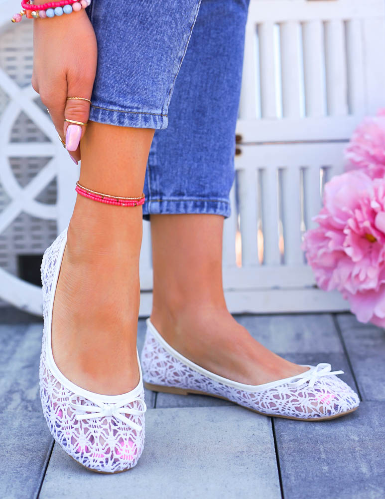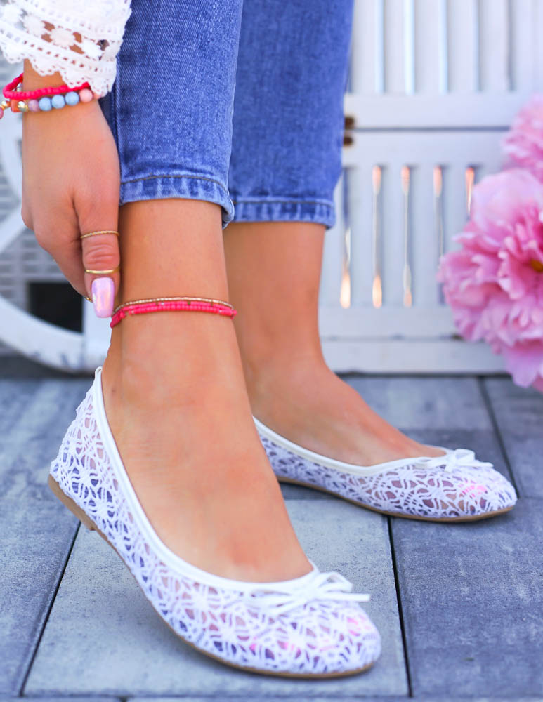 Białe Koronkowe Tenisówki Baleriny Siateczka