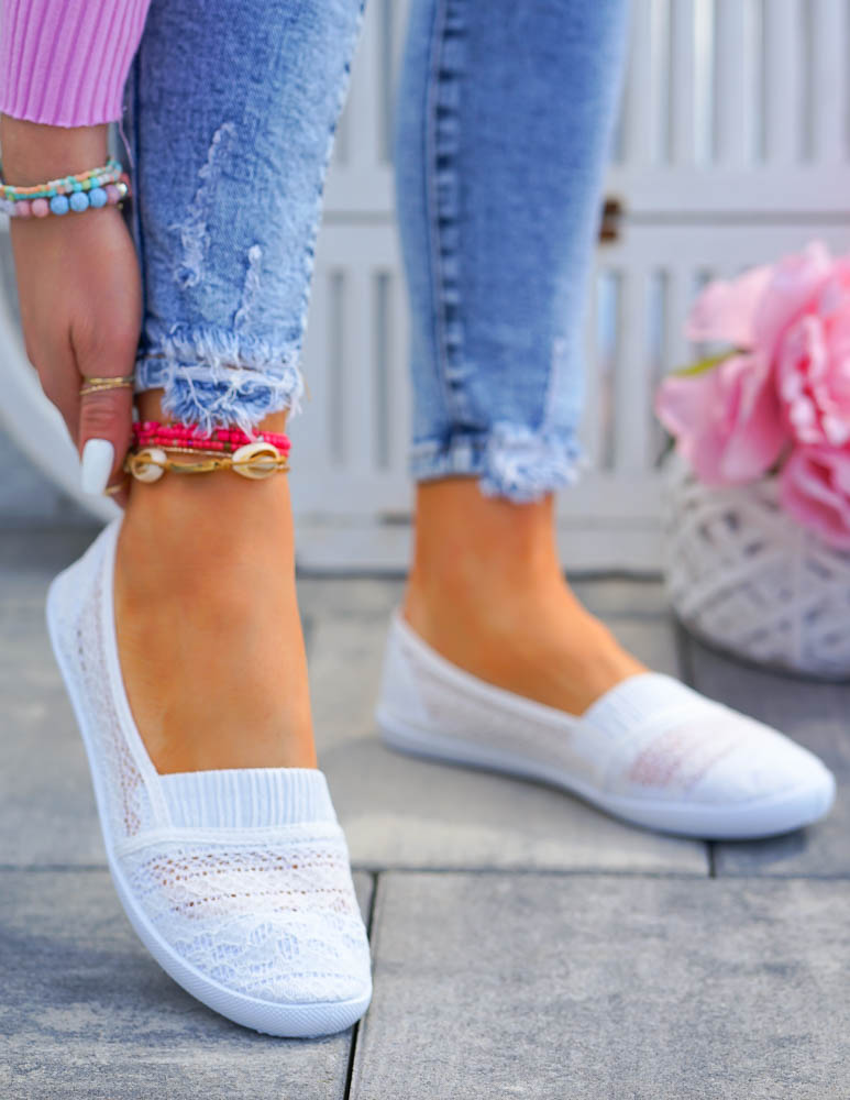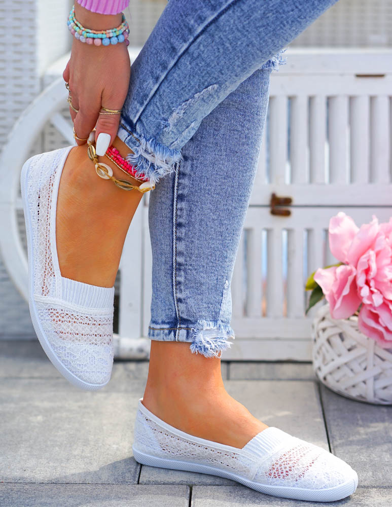 Białe Koronkowe Trampki Tenisówki Baleriny Simply