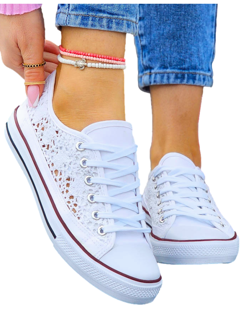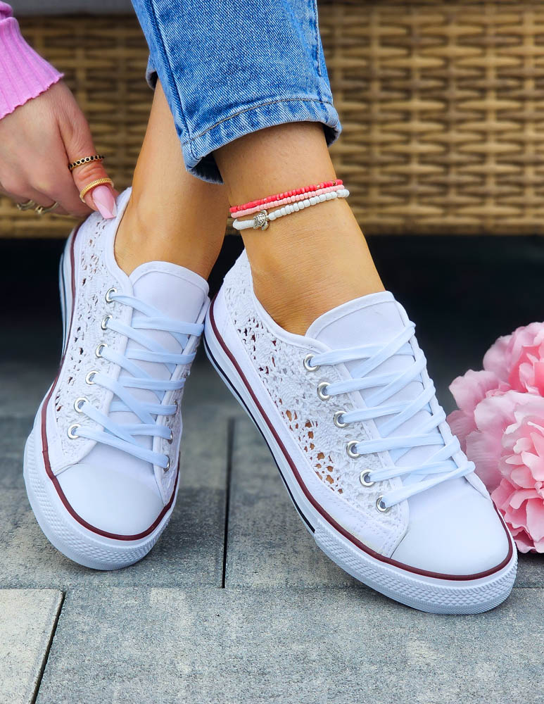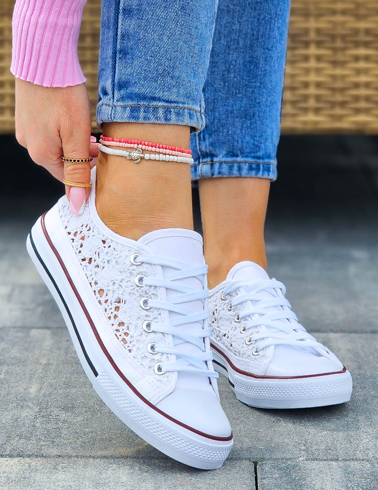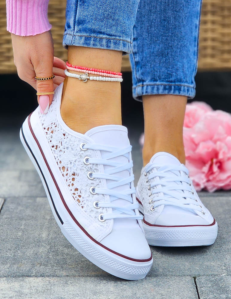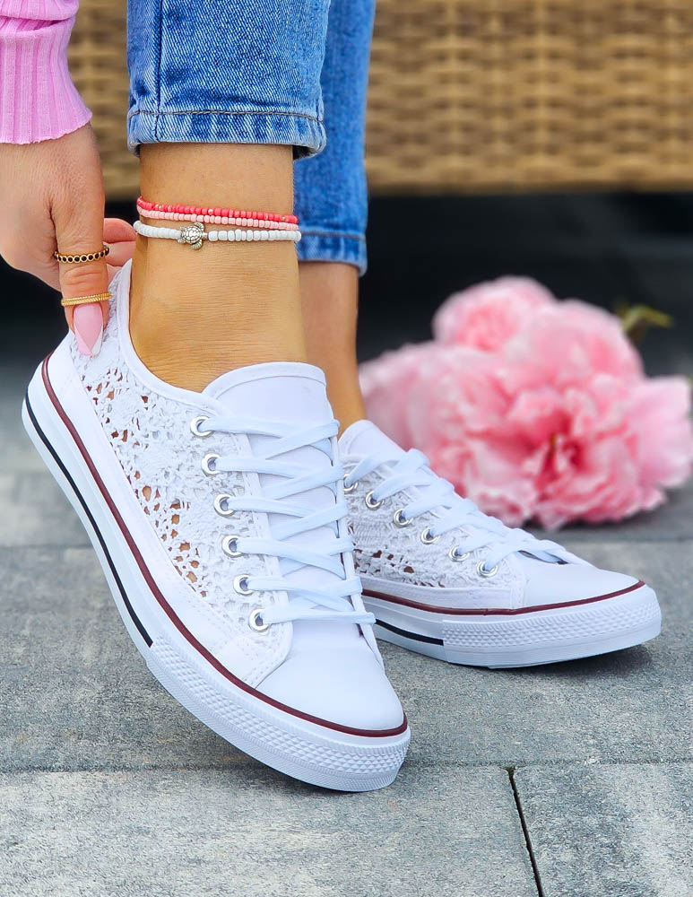- ❤ Białe, koronkowe trampki z przewiewnej tkaniny