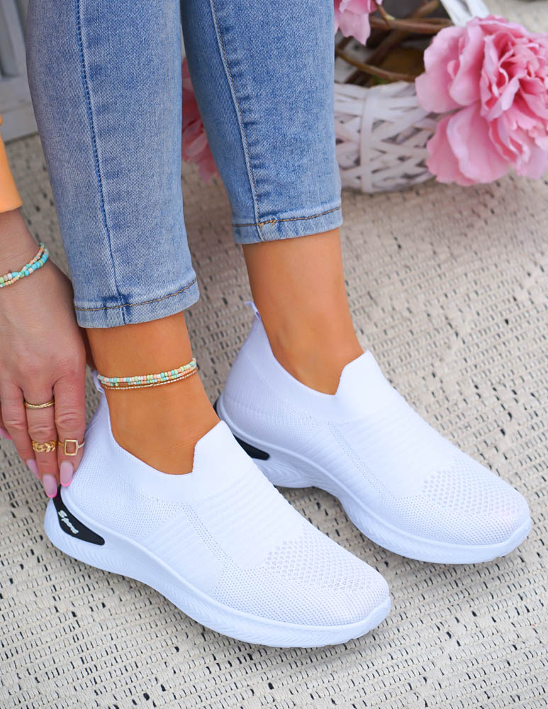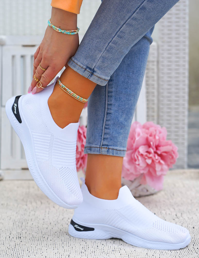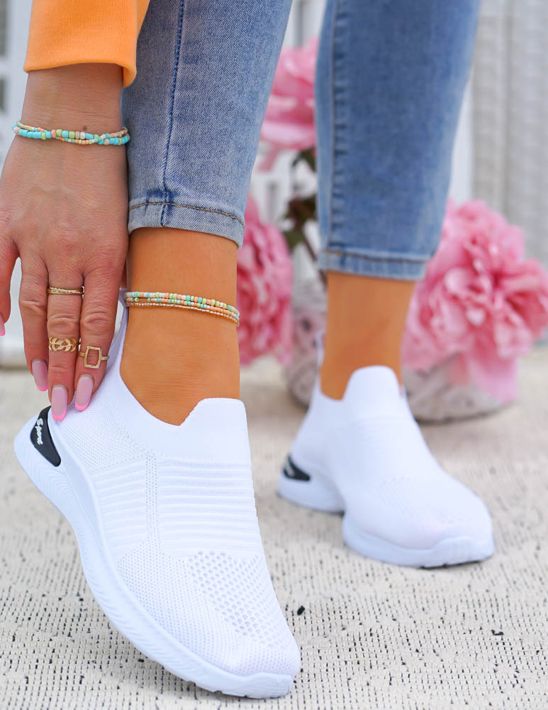 Białe Lekkie Buty Sportowe Damskie Wsuwane Indianas