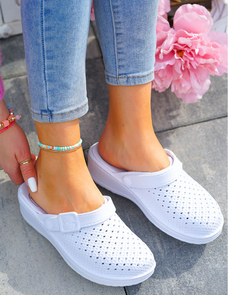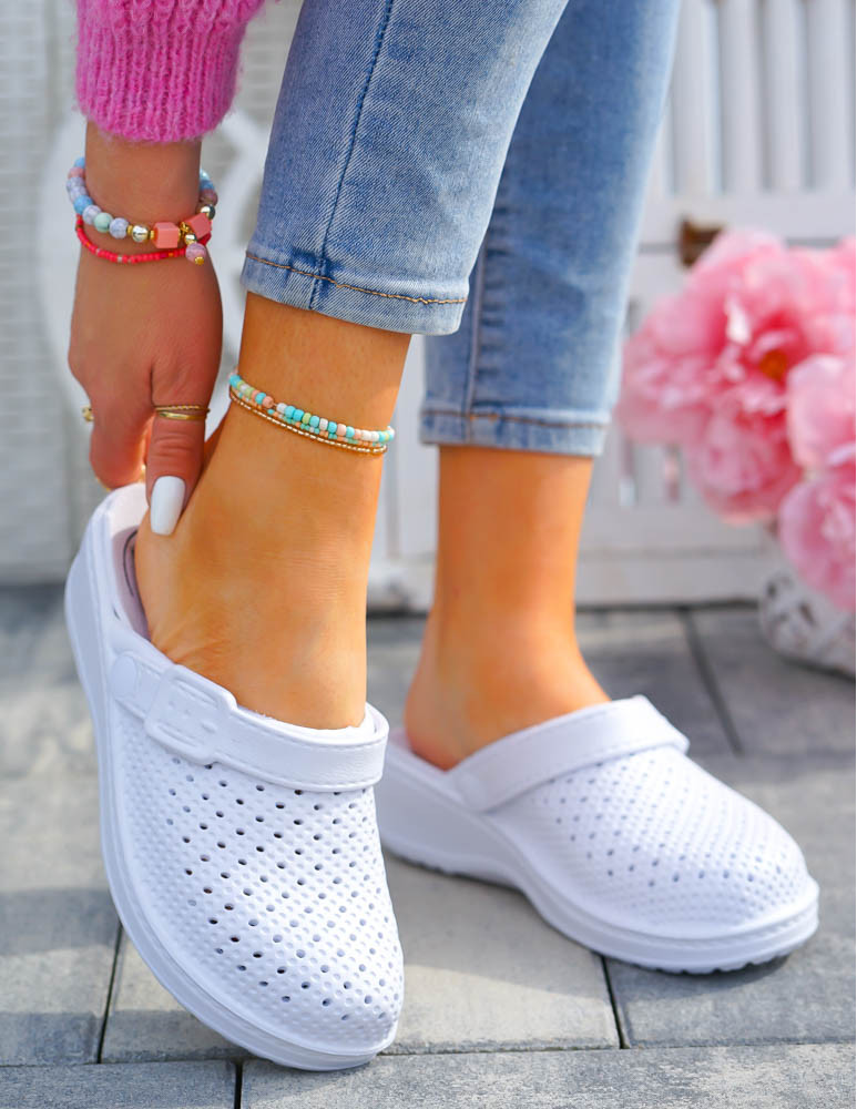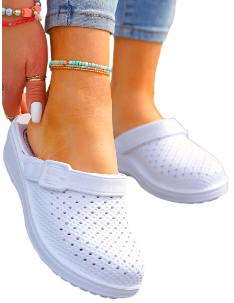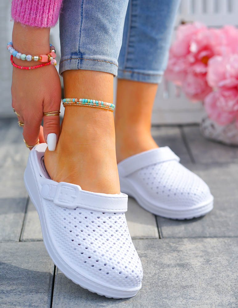 - Kod produktu: Białe Lekkie Piankowe Klapki Damskie Kroksy Zakryte Palce