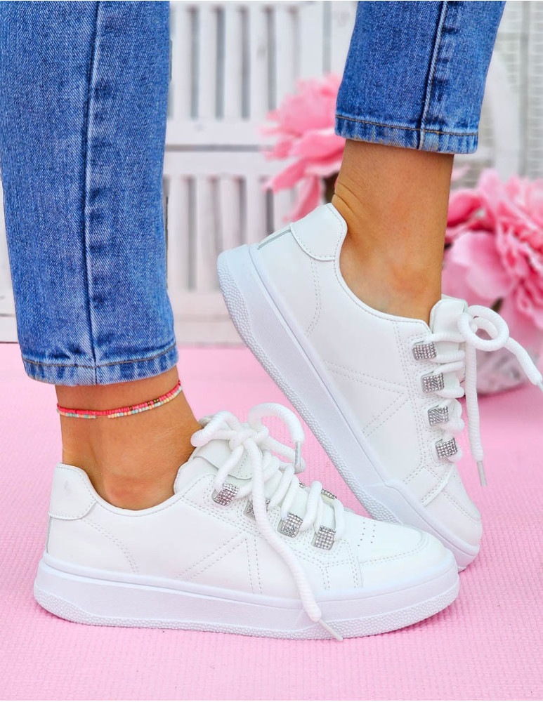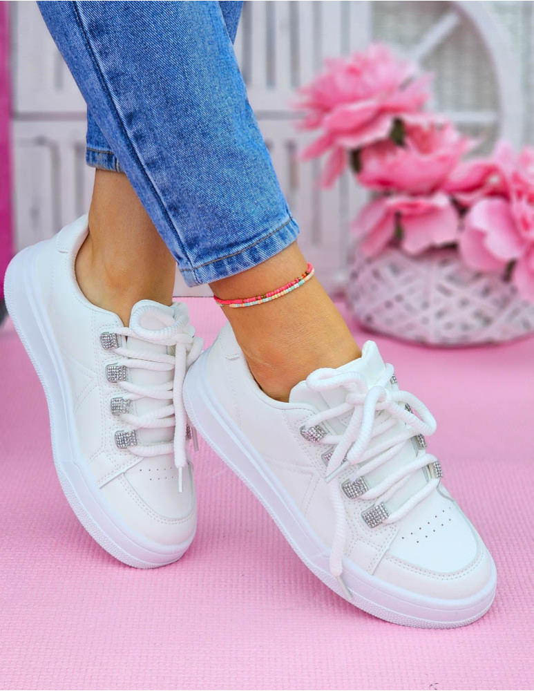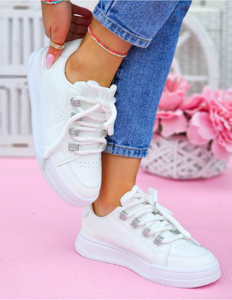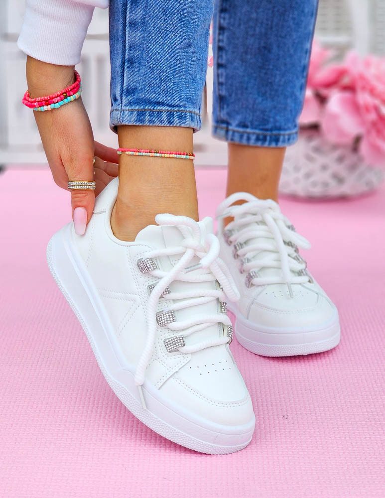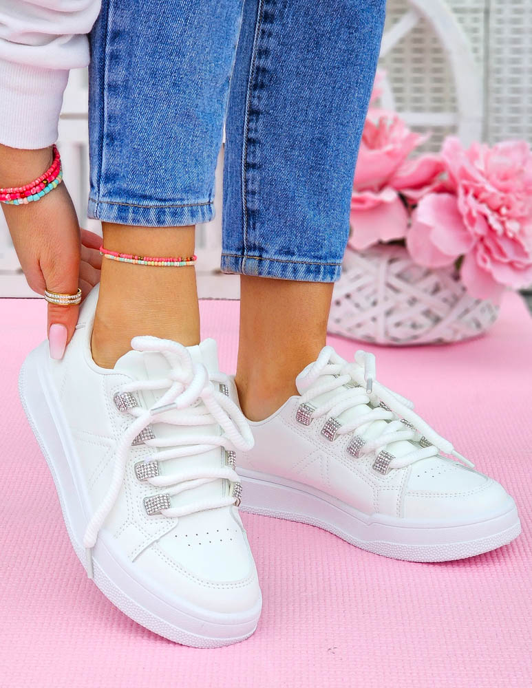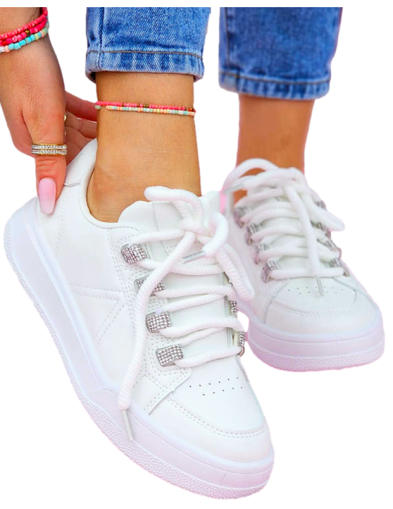 ❤ Białe adidasy z eco skóry na grubej podeszwie❤ Modne buty sportowe z błyszczącymi wstawkami