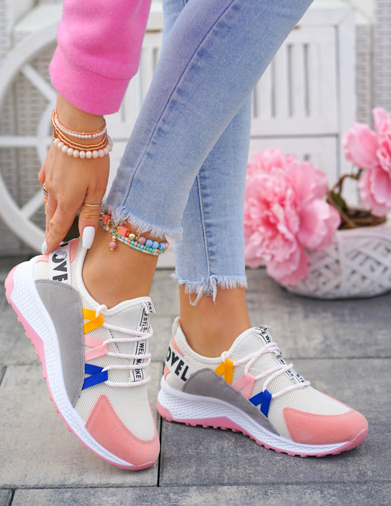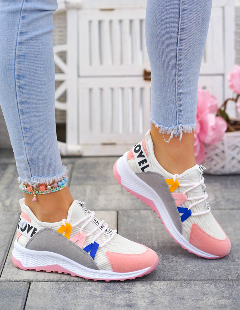 Białe Sneakersy Buty Sportowe Damskie Pink Peach