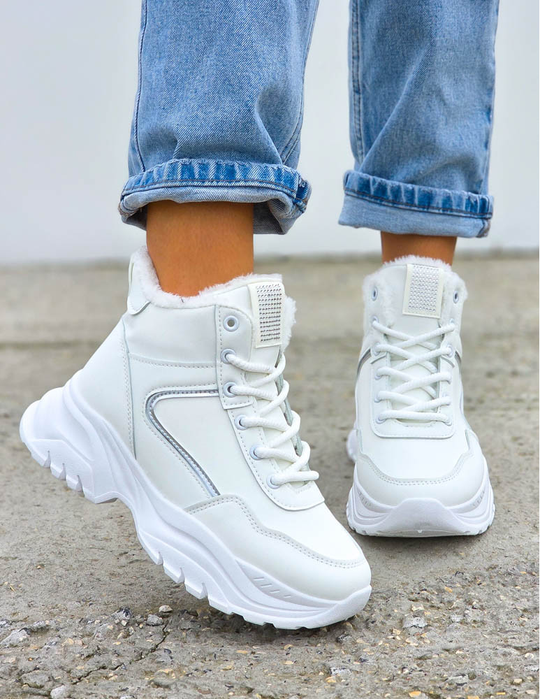 Białe Sportowe Zimowe Botki Damskie Śniegowce Swizars