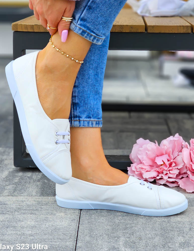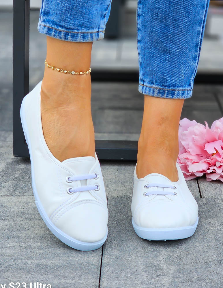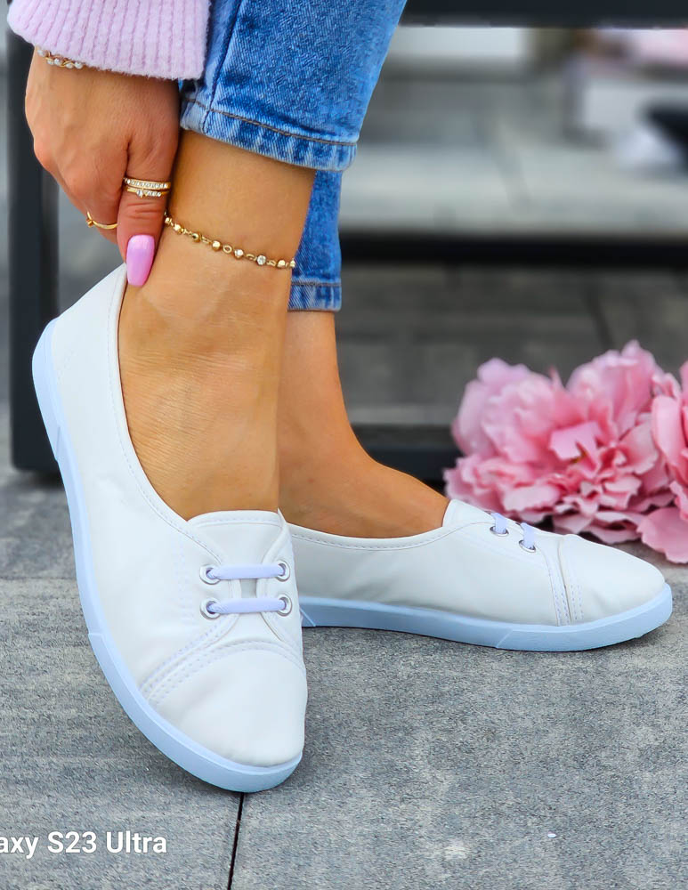 ❤Białe tenisówki wykonane z miękkiej tkaniny z wstawką z gumy❤Wysyłka 24 h❤Lekkie, wygodne buty dams..