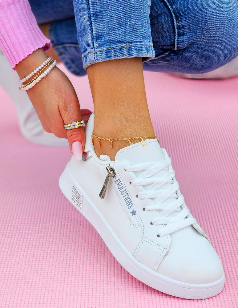 - Kod produktu: Białe Trampki Buty Sportowe Ze Skóry Evolutions