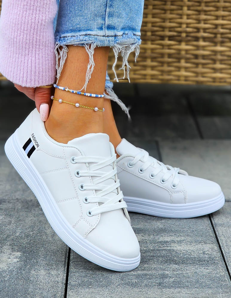 - Kod produktu: Białe Trampki Buty Sportowe Ze Skóry Fit Fashion Basic