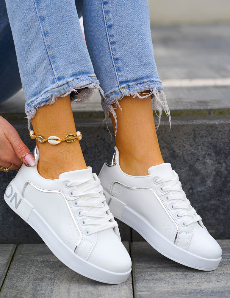 - Kod produktu: Białe Trampki Buty Sportowe Ze Skóry Silver Star