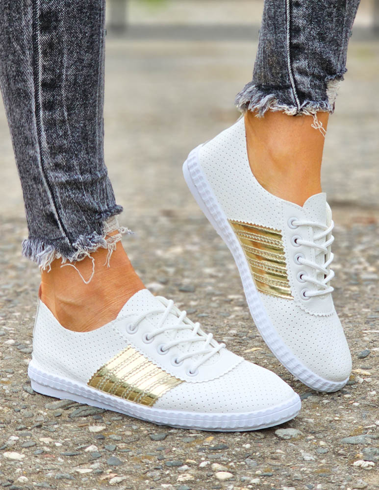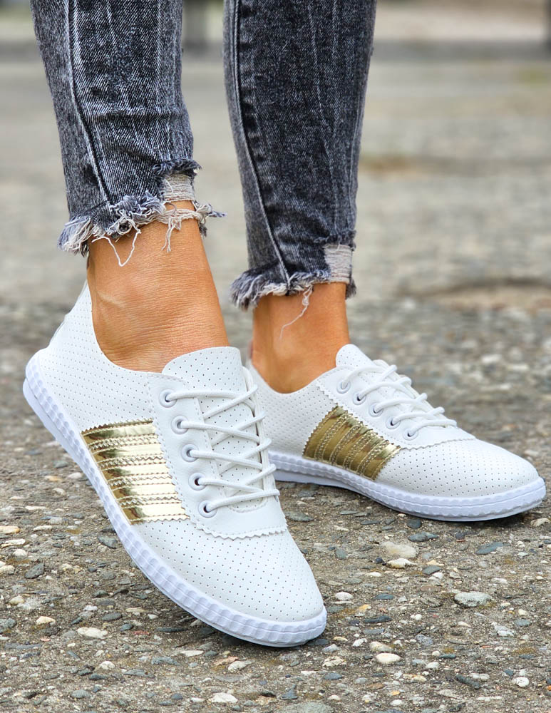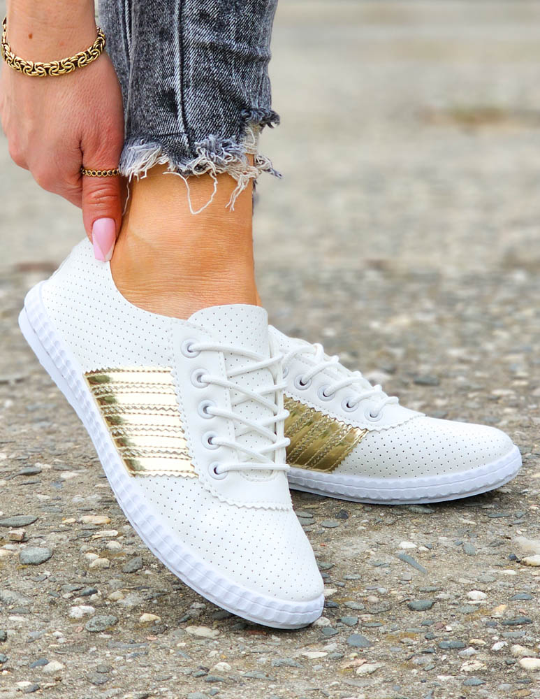Biało-Złote Sneakersy Buty Sportowe Damskie Lus Vittron