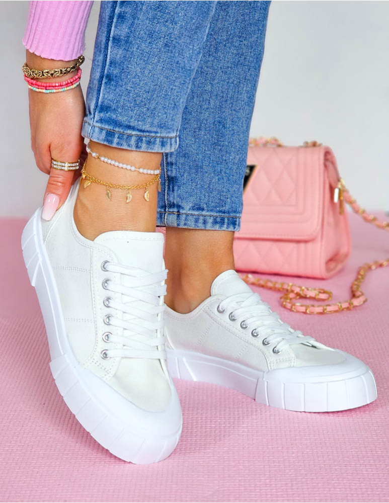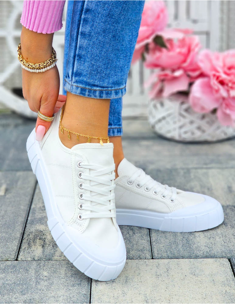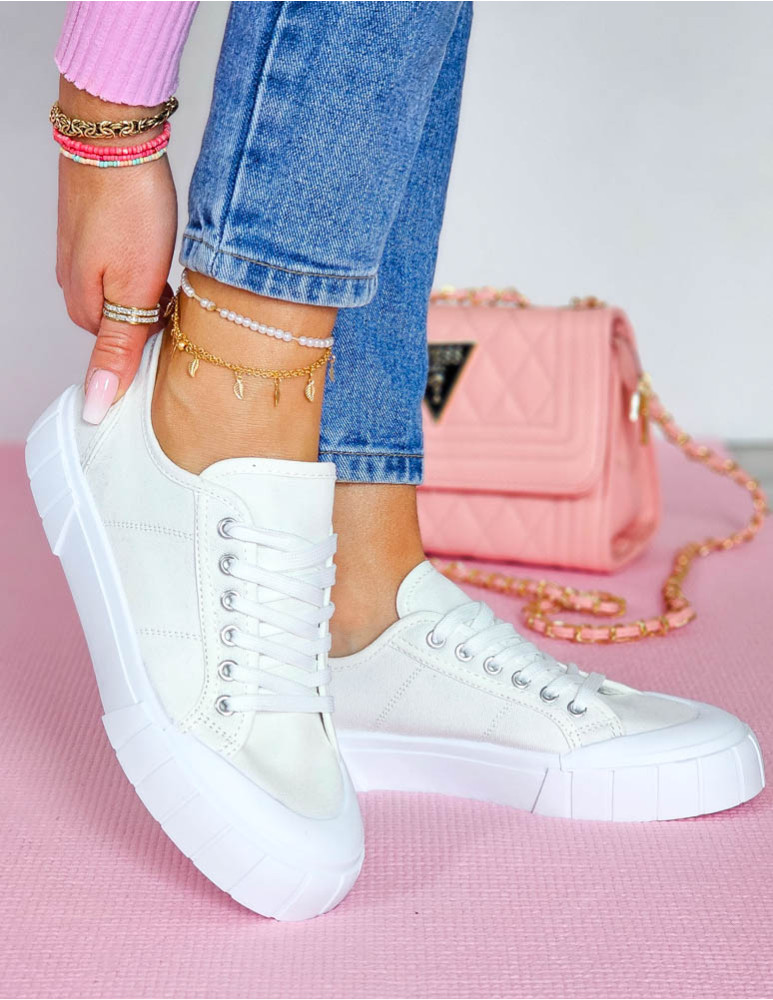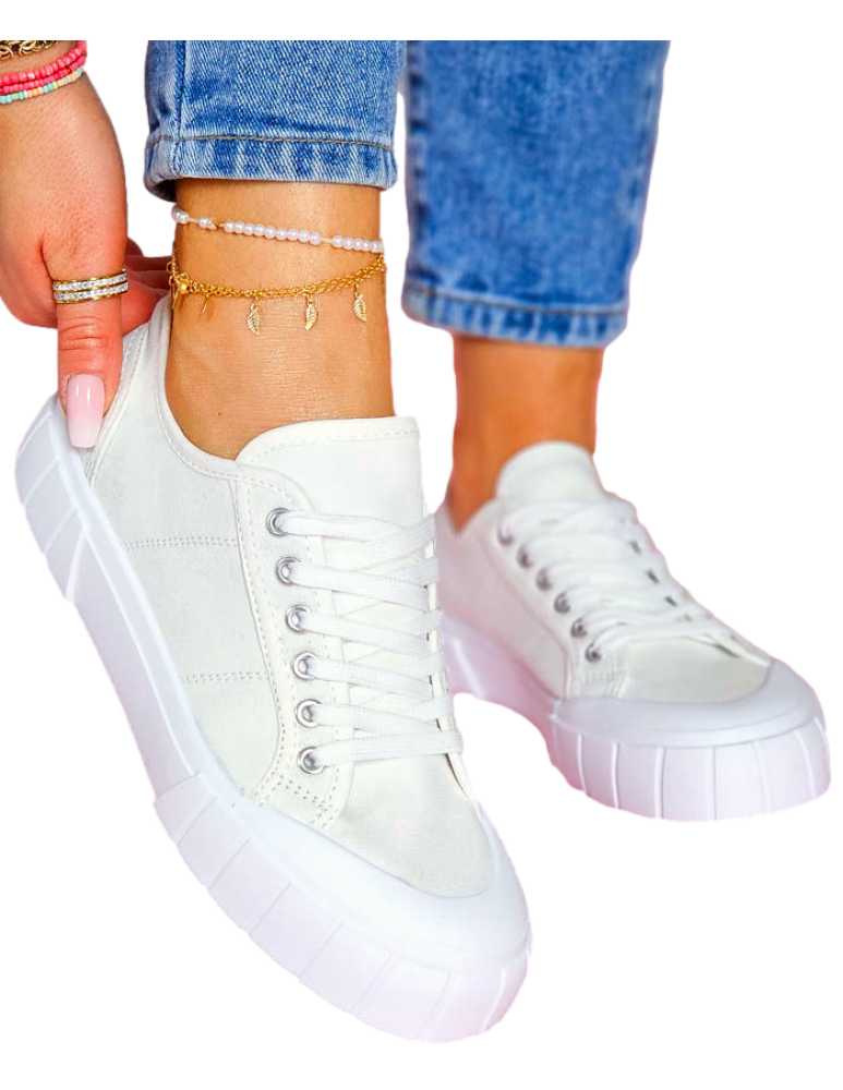 Białe Trampki Damskie Na Grubej Podeszwie Leves