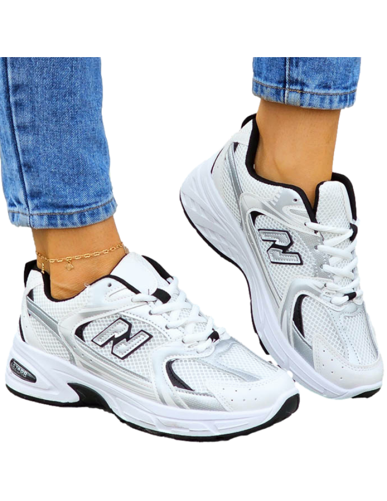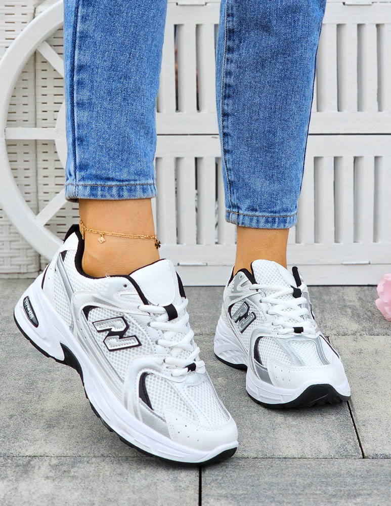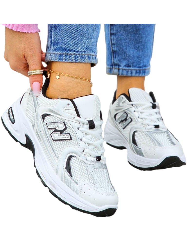 - Kod produktu: Biało-Srebrne Sneakersy Buty Sportowe Na Platformie New B 530