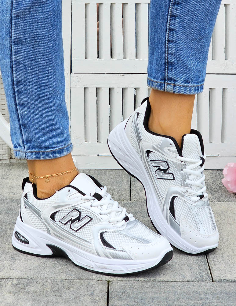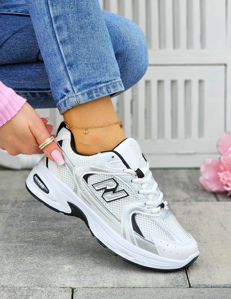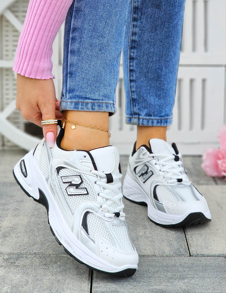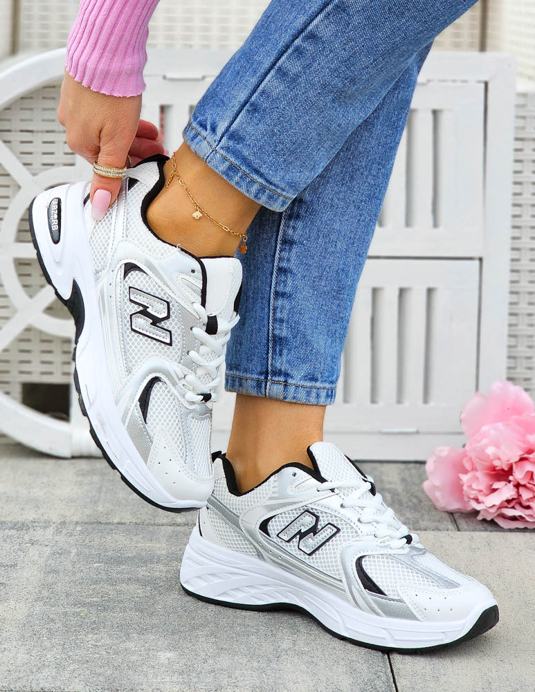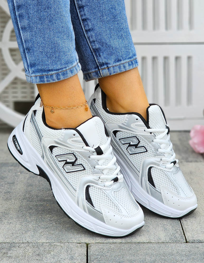Biało-Srebrne Sneakersy Buty Sportowe Na Platformie New B 530