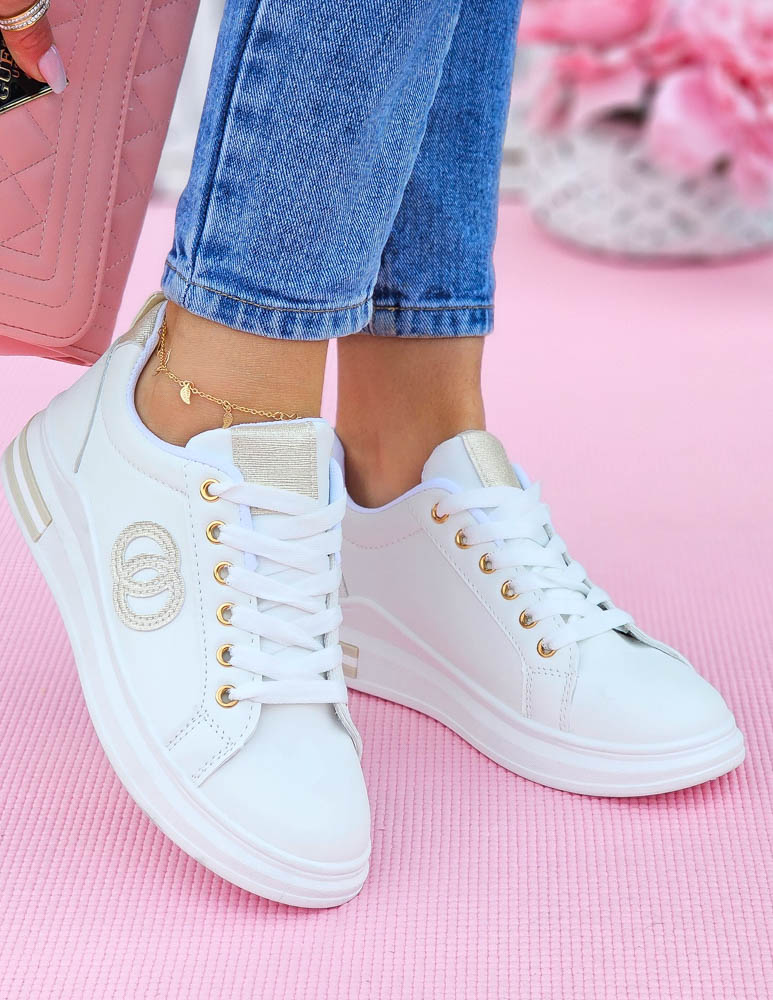 Biało-Złote Sneakersy Buty Sportowe Damskie Lus Vittron