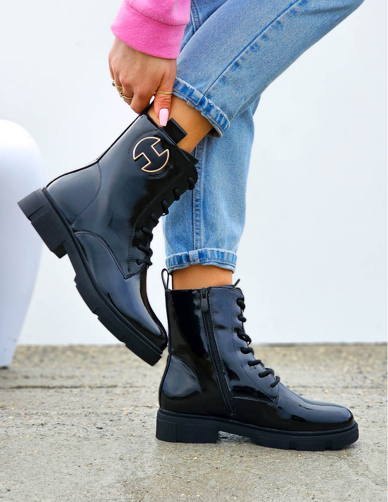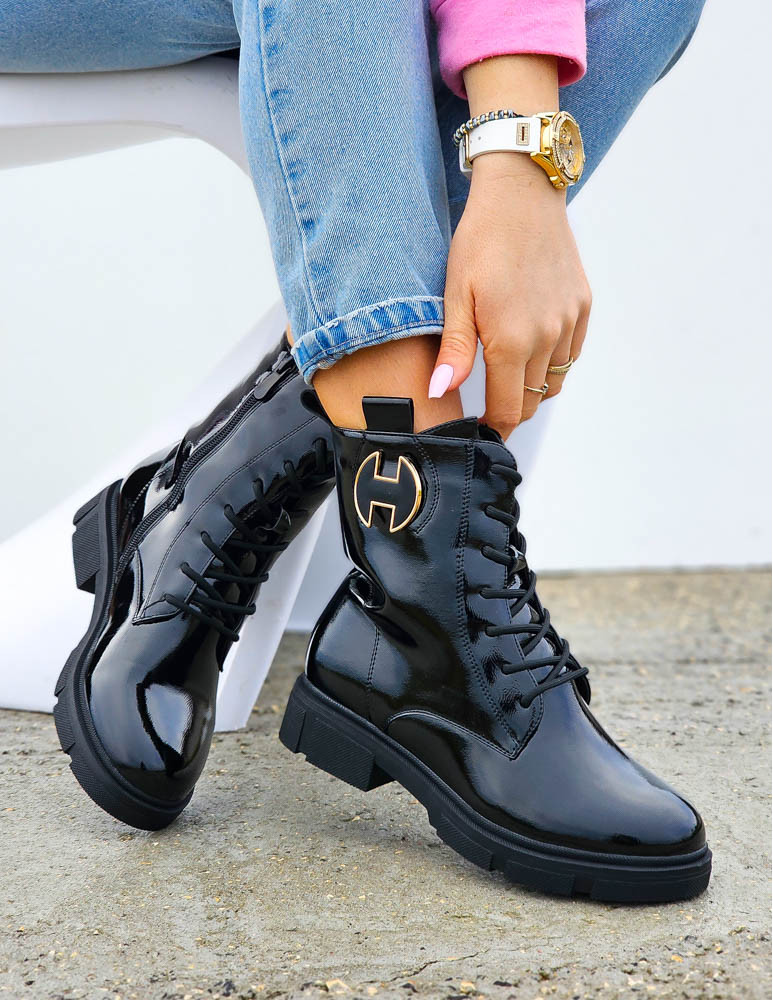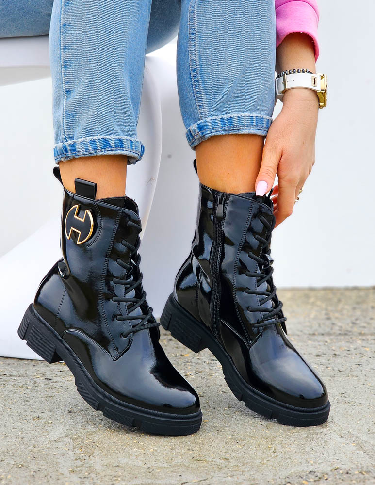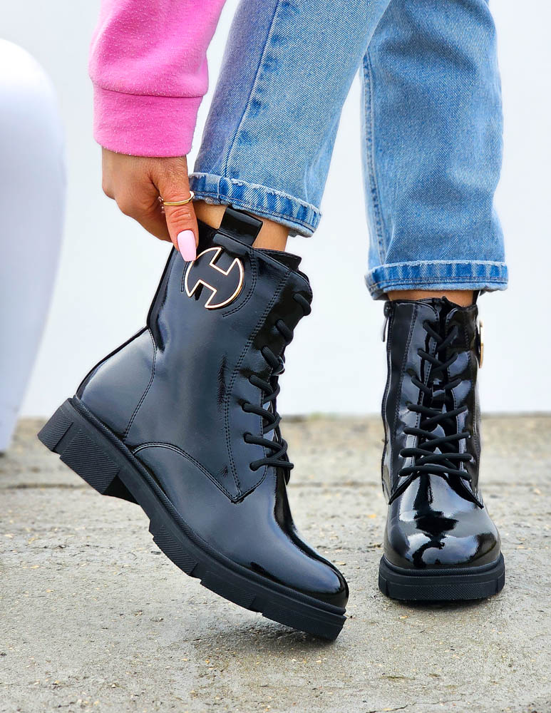 Czarne Botki Workery Glany Damskie Favritto