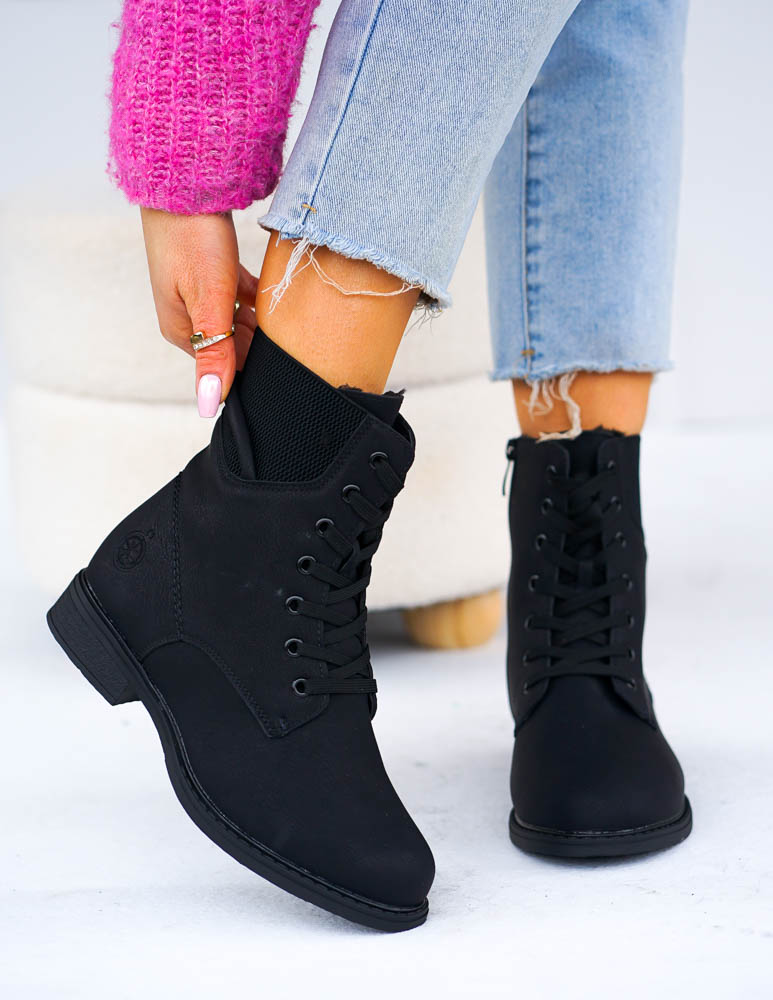Krótkie Czarne Botki Z Gumami Na Platformie Mauris