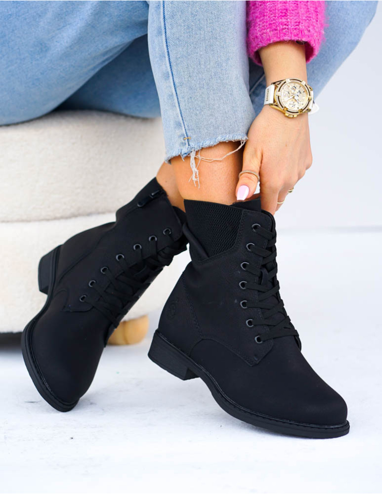 ❤Botki są sznurowane dodoatkowo posiadają suwak od wewnętrznej strony oraz rozciągliwę wstawkę z gumy