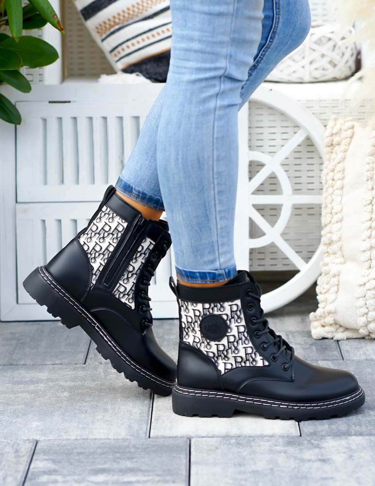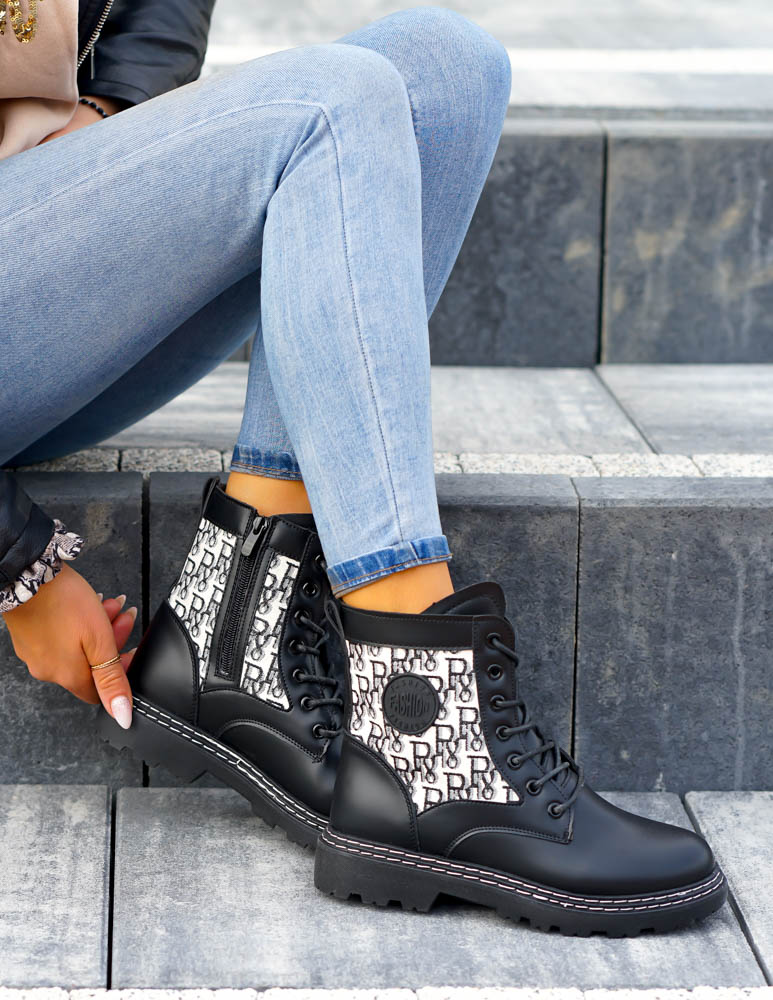 - Zapięcie: botki są sznurowane, posiadają także suwak