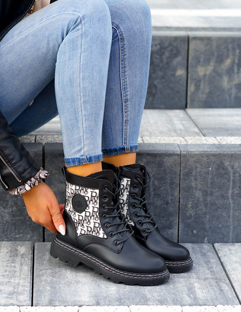 ❤ Modne i tanie buty on-line❤ Glany damskie❤ Czarne botki na płaskim spodzieModne botki na grub..