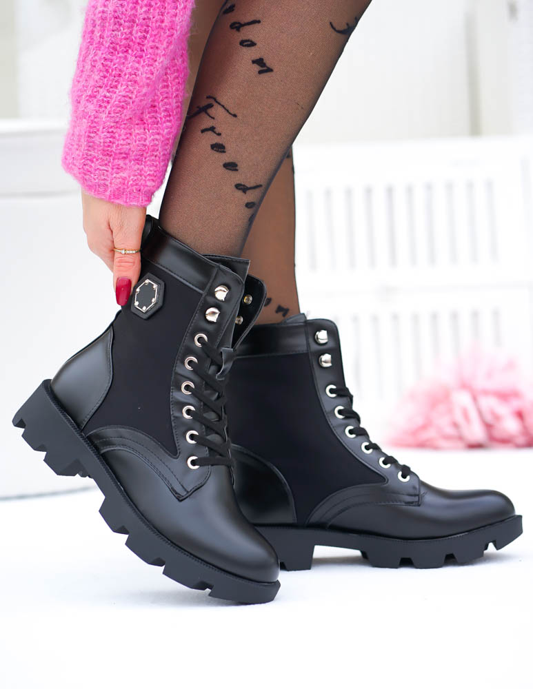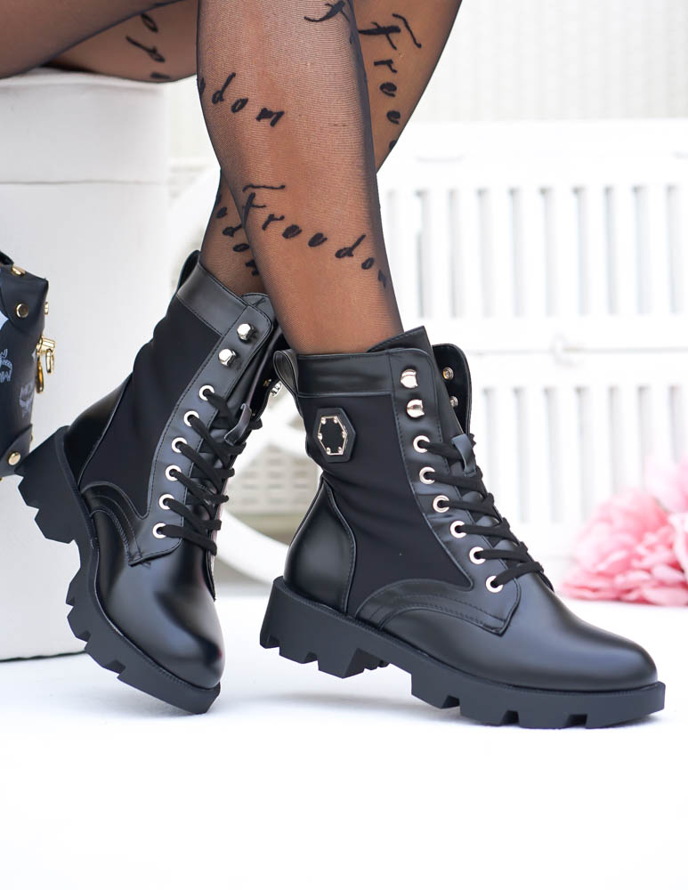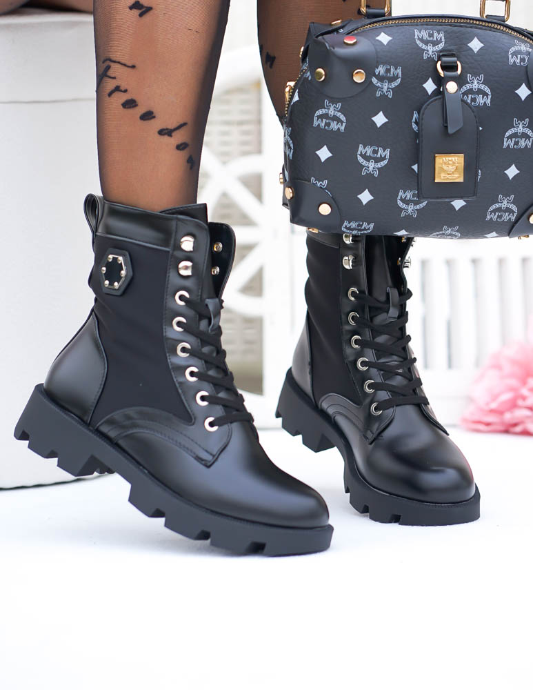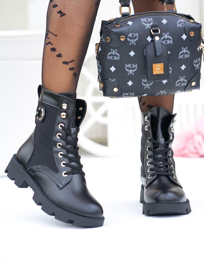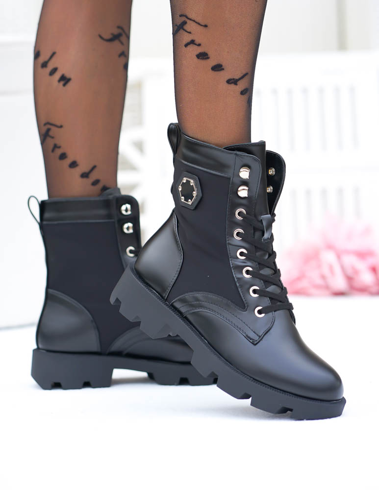 Czarne Botki Workery Glany Damskie Favritto