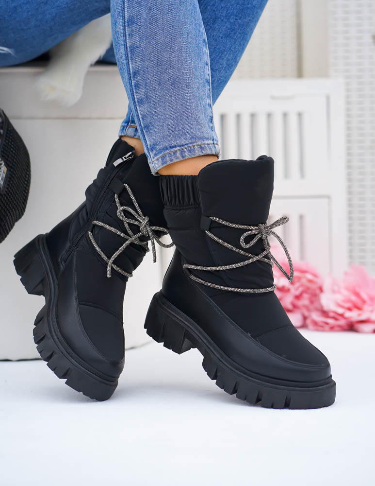 Botki Damskie Śniegowce Wodoodporne Frozzen Czarne