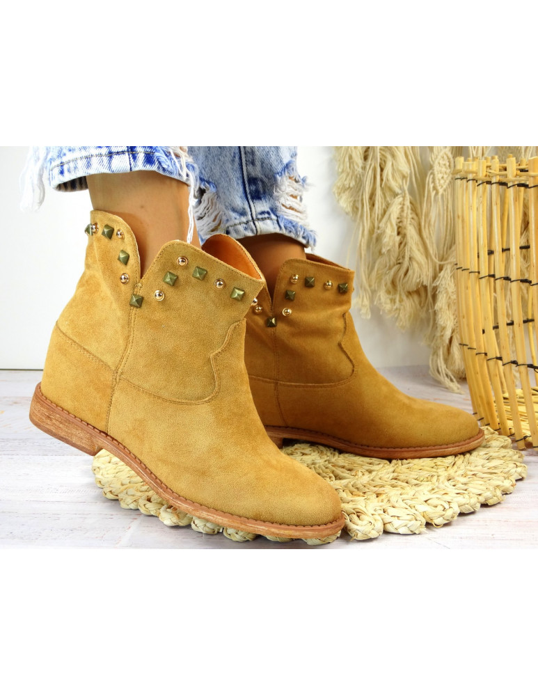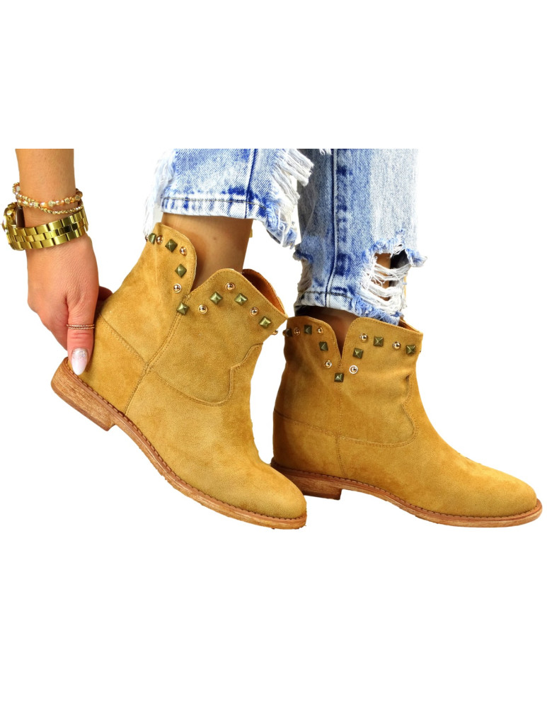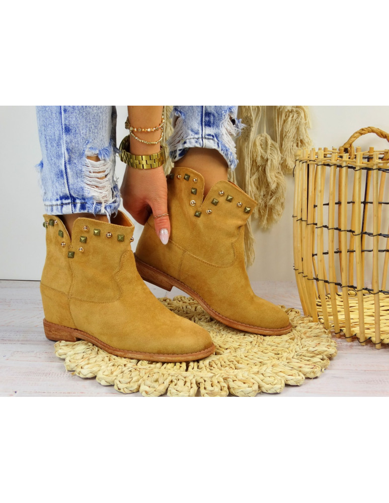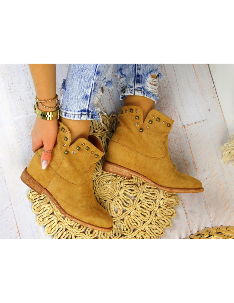 Botki Damskie Ukryty Koturn Camel
