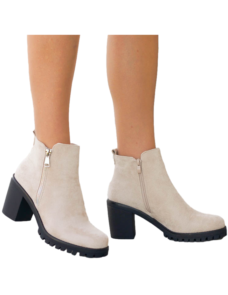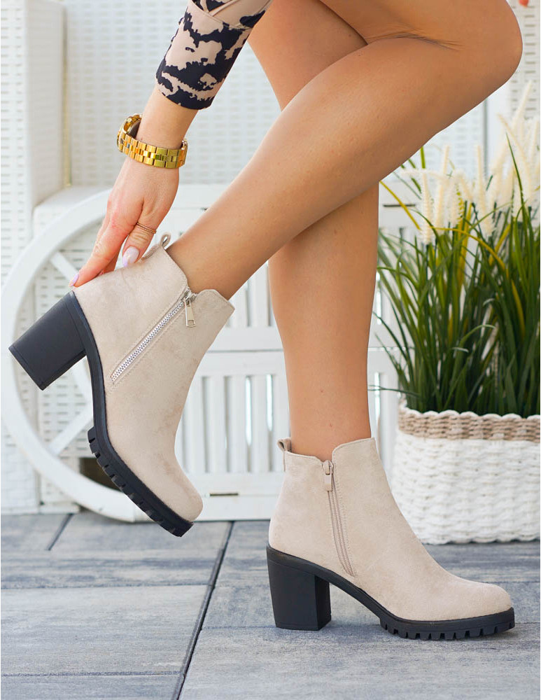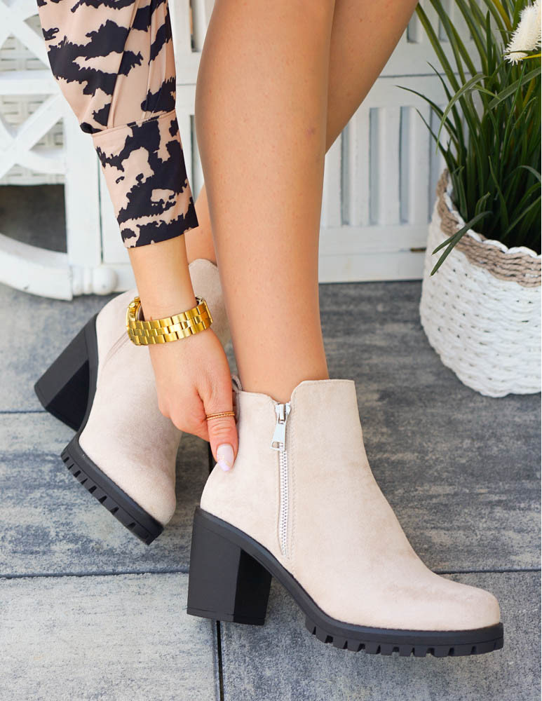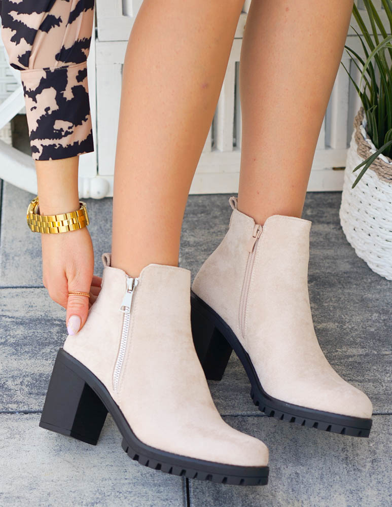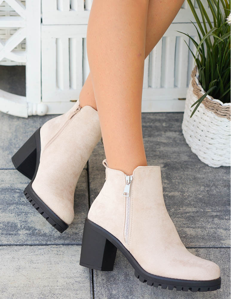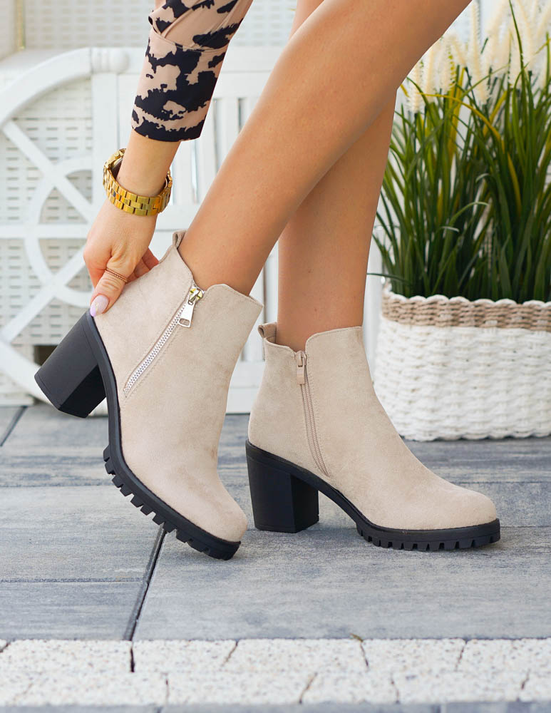 Beżowe Klasyczne Zamszowe Botki Na Obcasie Daisy