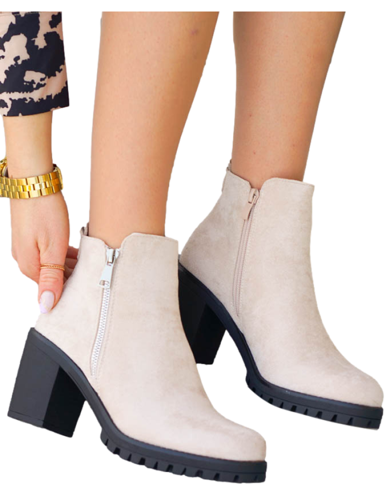 Przepiękne zamszowe botki, dostępne w beżowym kolorzewykonane z wysokiej jakości miękkiej eco skóry..