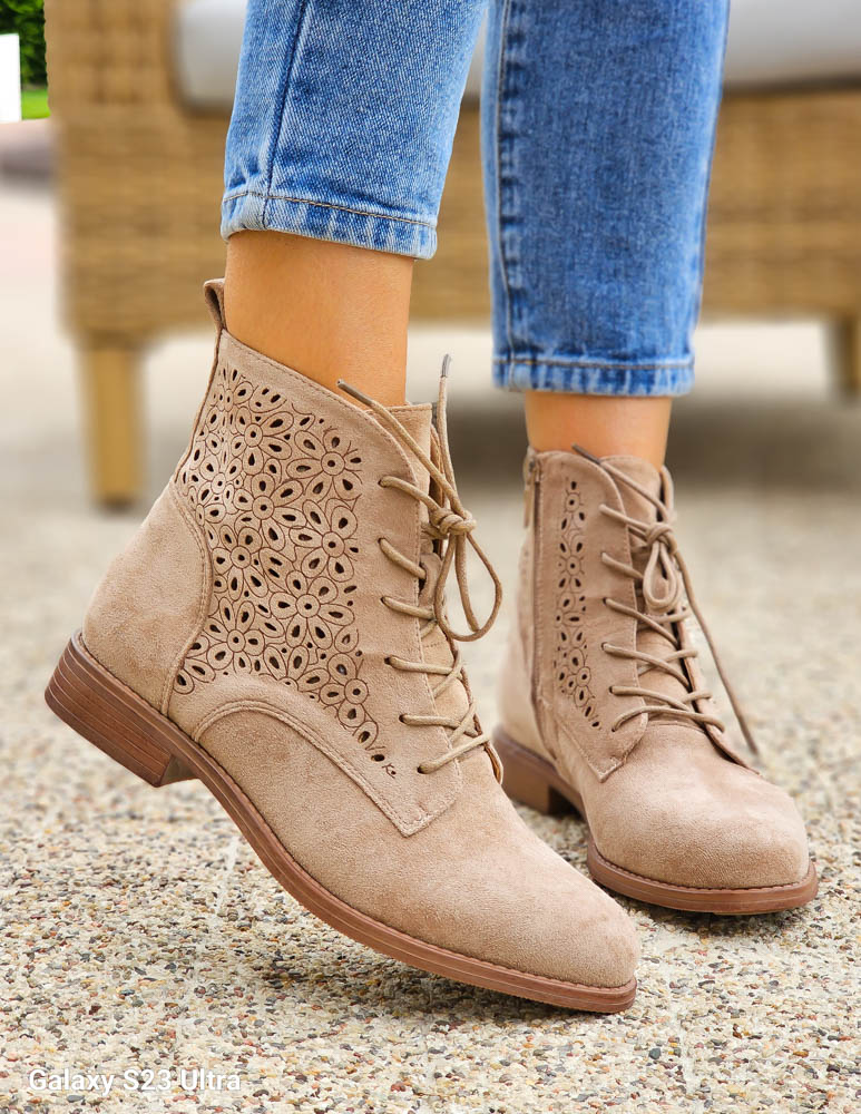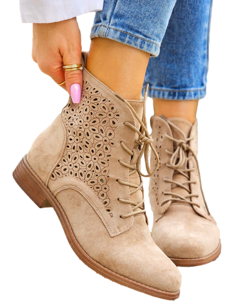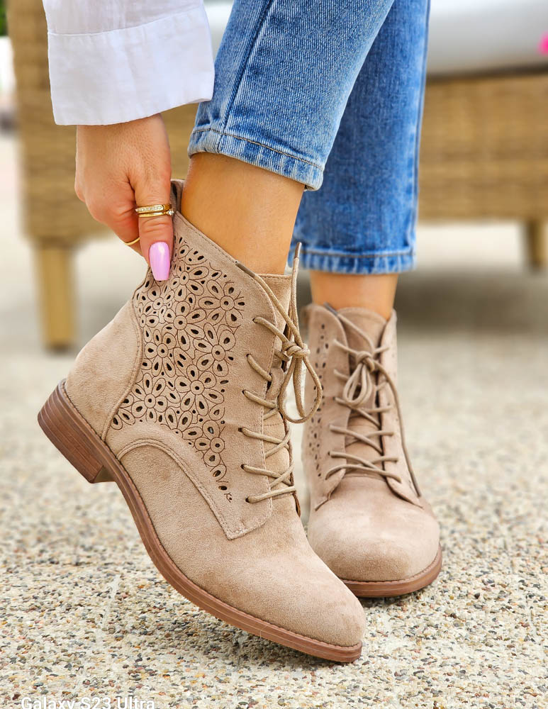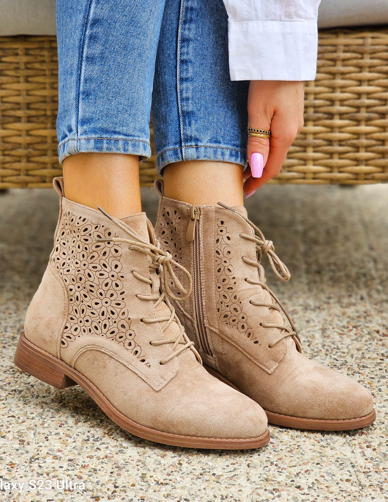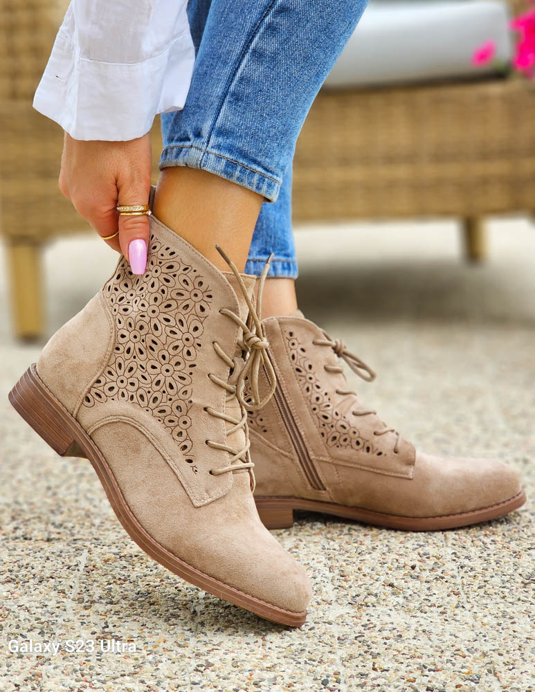 - Kod produktu: Beżowe Zamszowe Botki Damskie Sznurowane Hellen