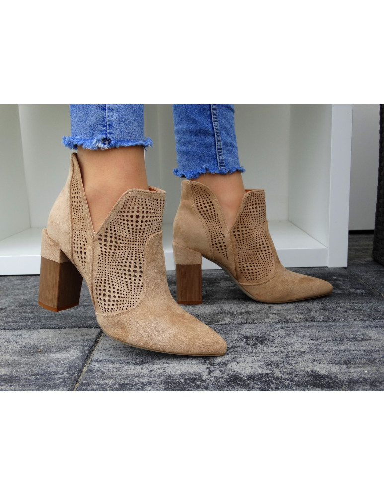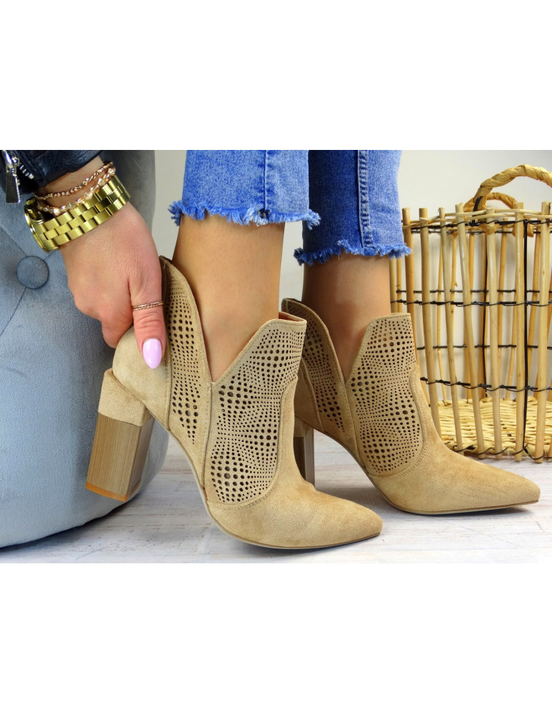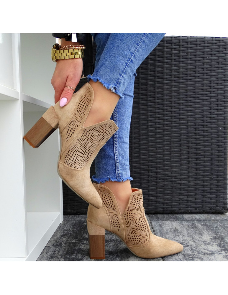 - Kod produktu: Beżowe Zamszowe Ażurowe Botki Na Słupku Paula