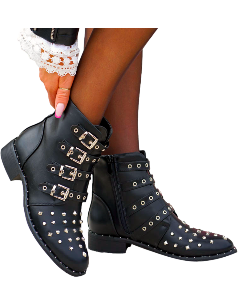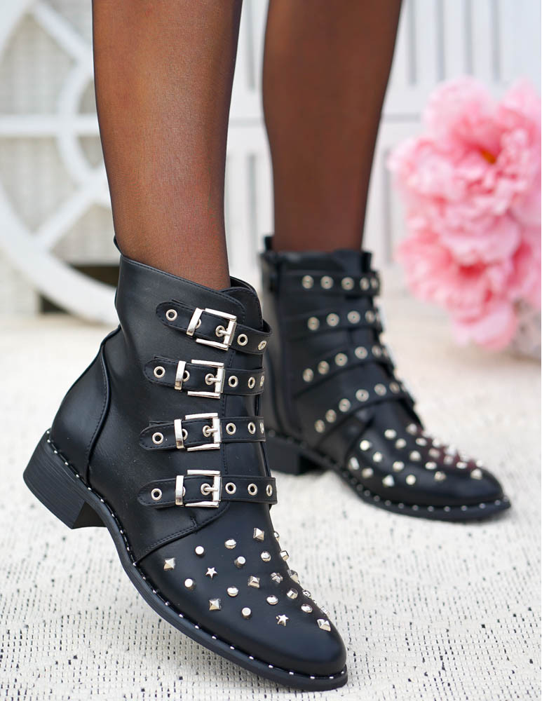 Czarne Botki Workery Glany Damskie Favritto