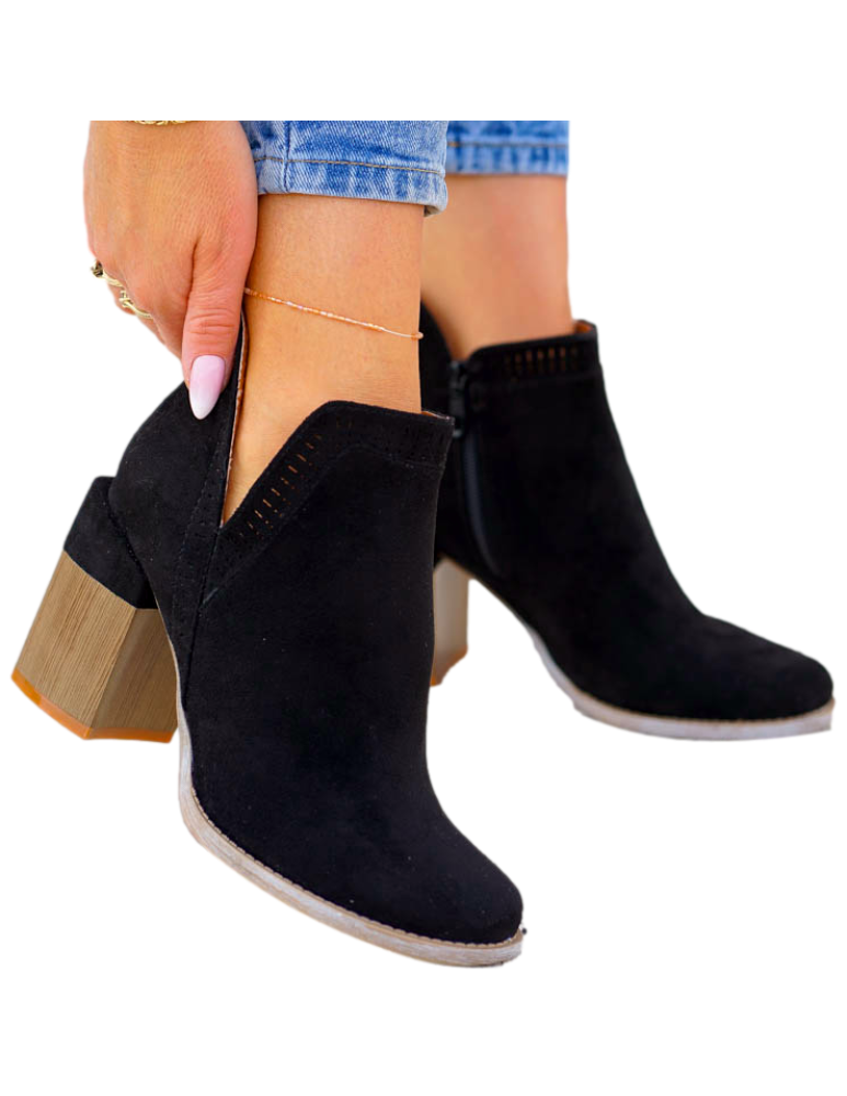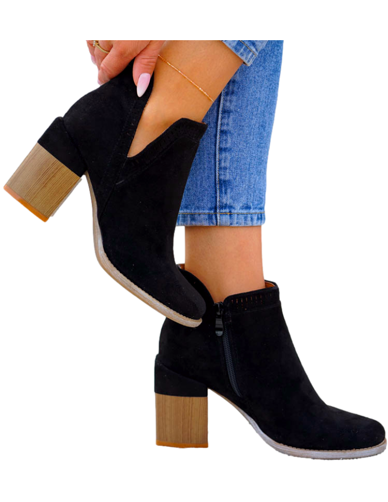 - Kod produktu: Czarne Klasyczne Zamszowe Botki Na Obcasie Fenny