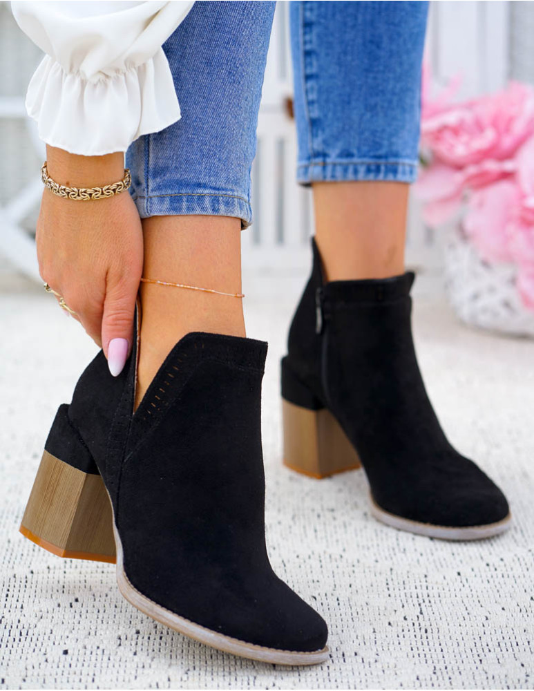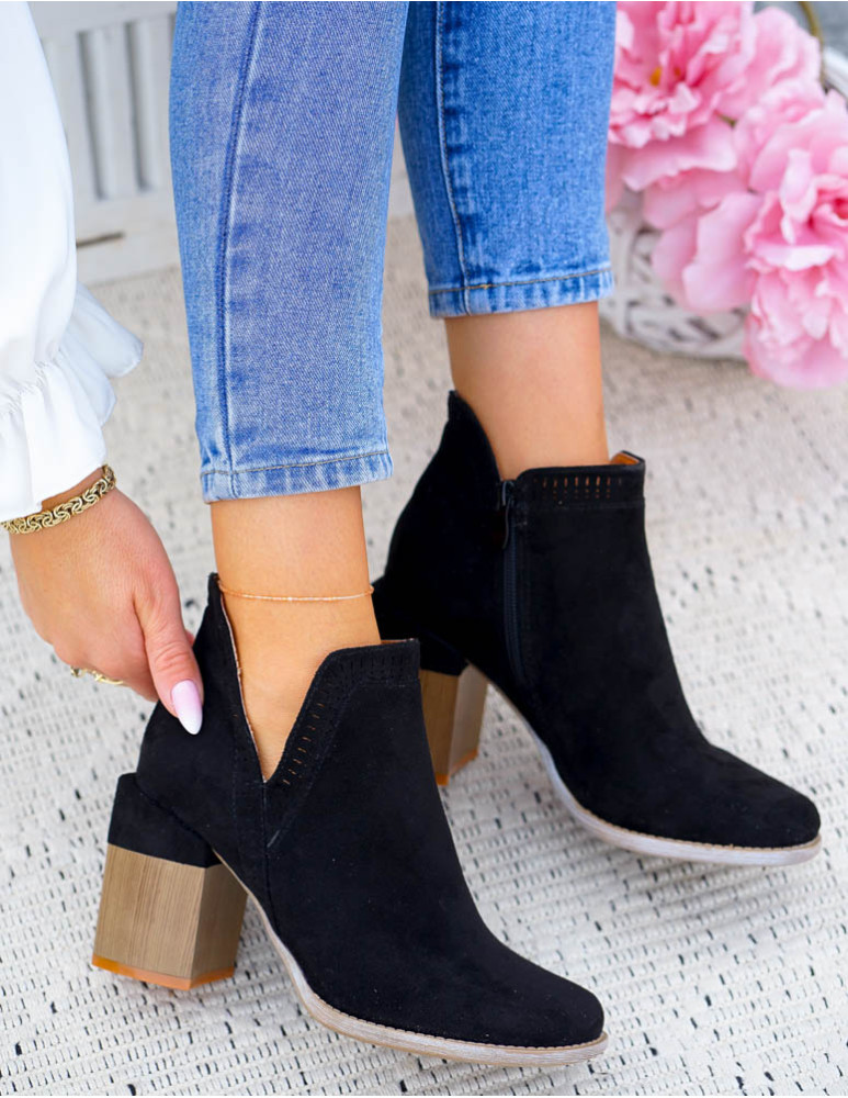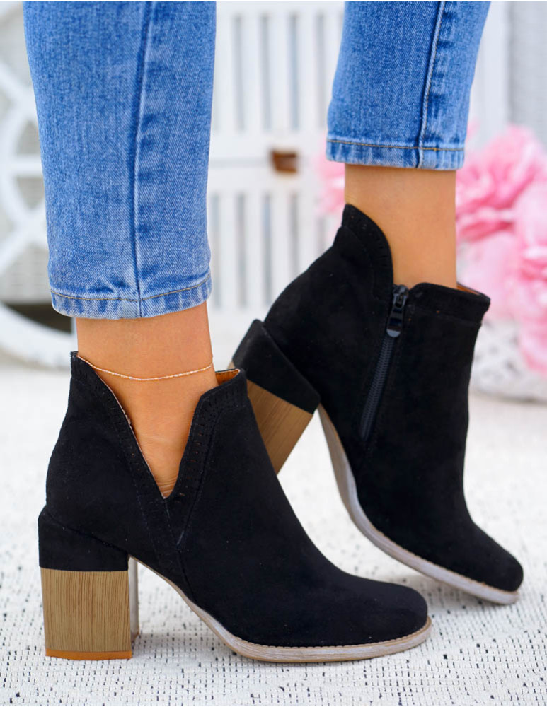 Czarne Botki Na Obcasie Z Wycięciami Kayla