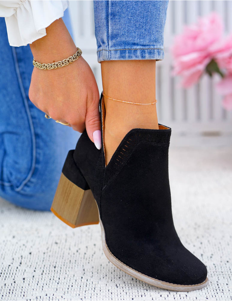 Czarne Klasyczne Zamszowe Botki Na Obcasie Fenny