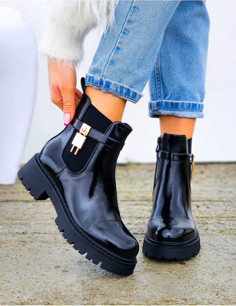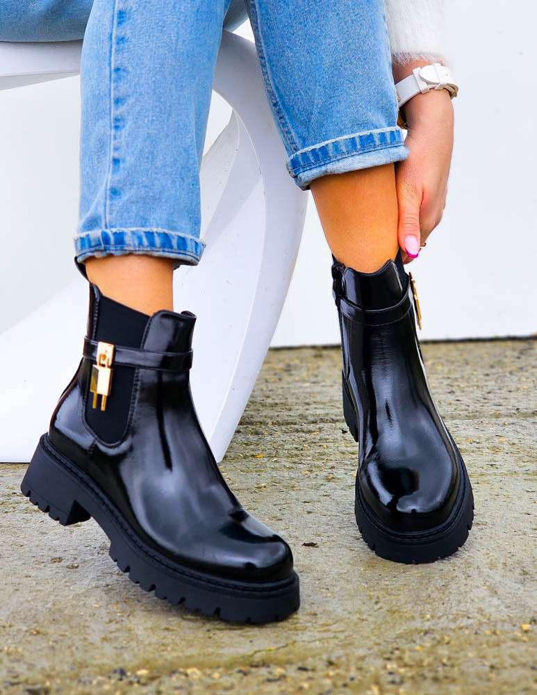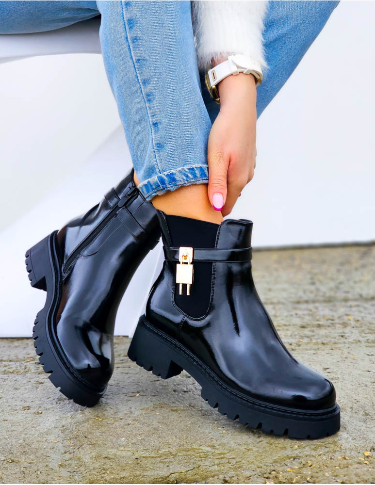 Klasyczne Botki Lakierowane Workery Mirror