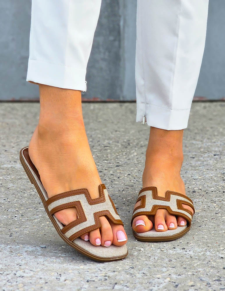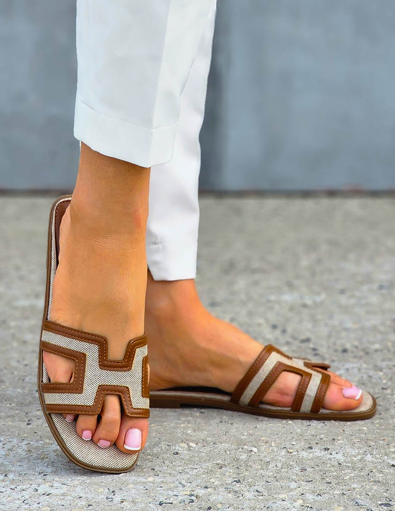 Brązowe Klasyczne Klapki Damskie Herns Summer