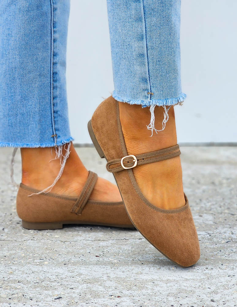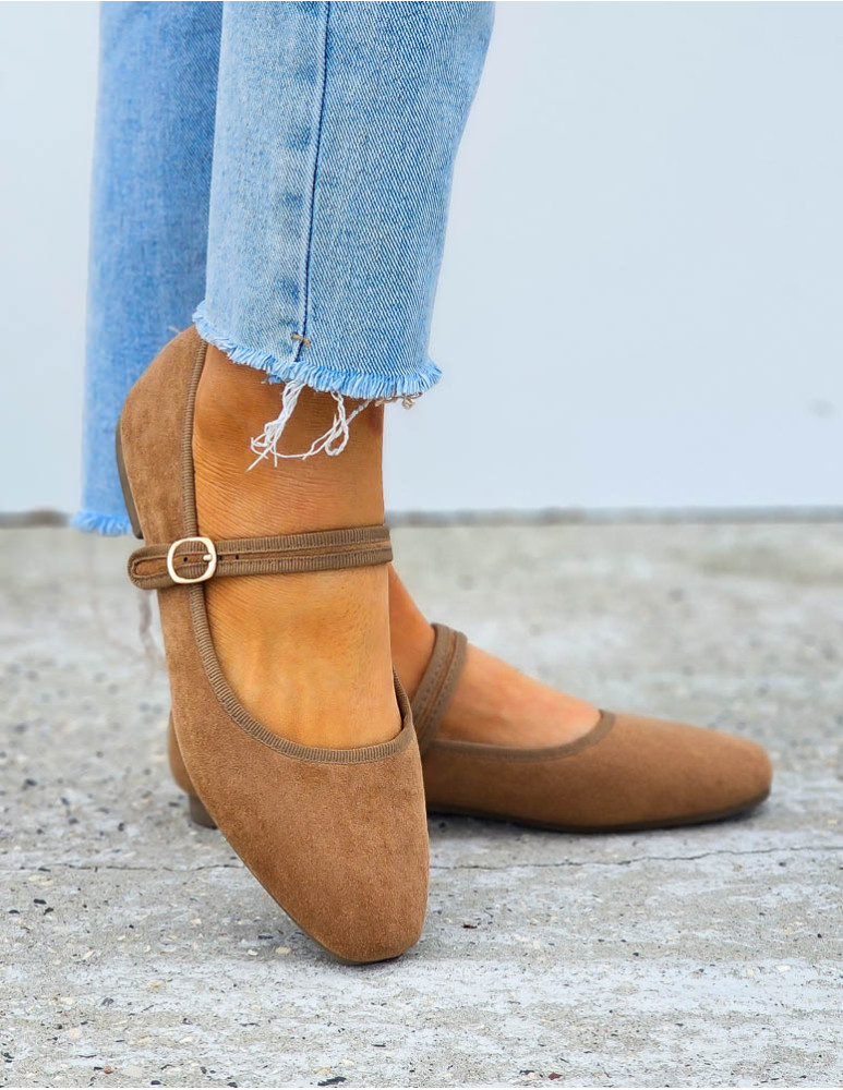 Brązowe Zamszowe Baleriny Połbuty z Paskiem Zava