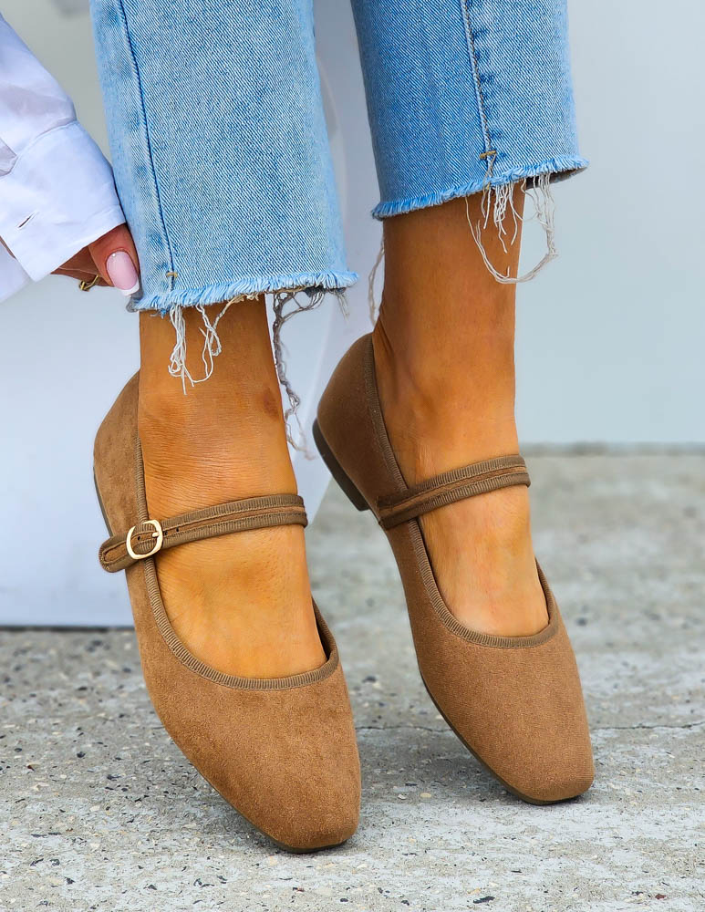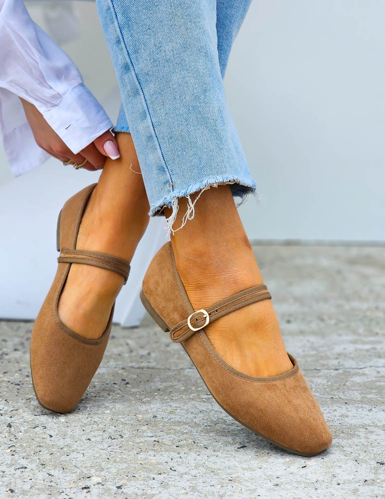 ❤ Klasyczne bezowe balerinki z paskiem