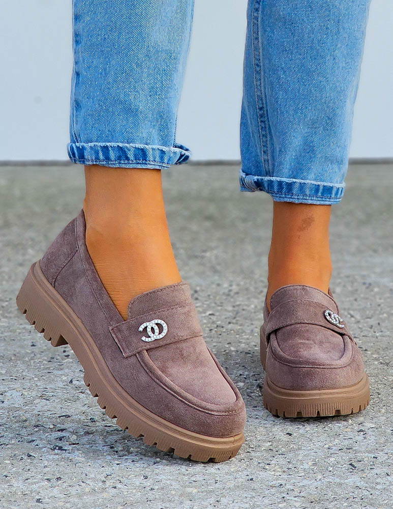 - Kod produktu: Brązowe Zamszowe Mokasyny Na Platformie Diores
