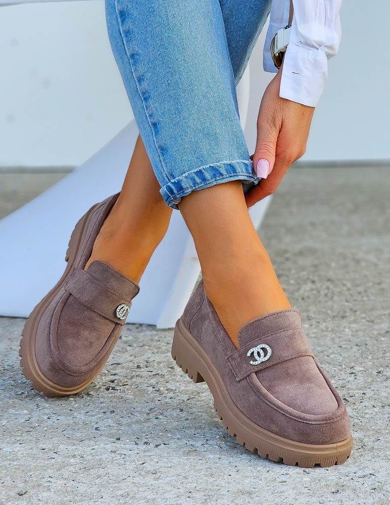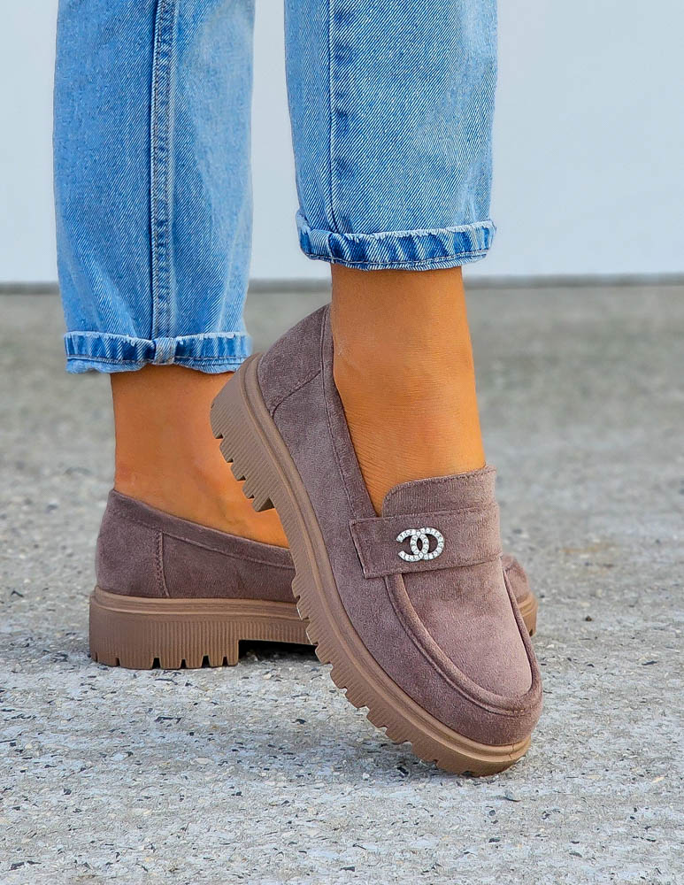 Beżowe Zamszowe Mokasyny Na Grubej Podeszwie Suzzy