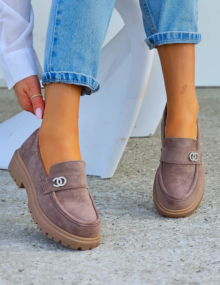 Brązowe Zamszowe Mokasyny Na Platformie Diores
