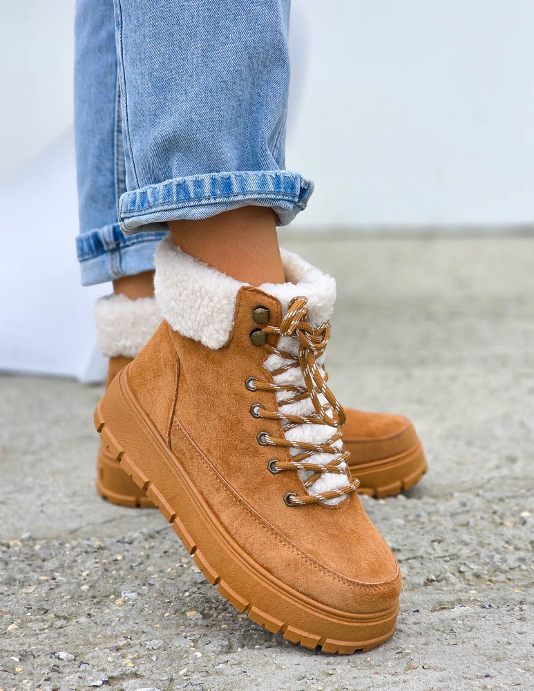Beżowe Zamszowe Botki Z Gumami Na Platformie Sahare