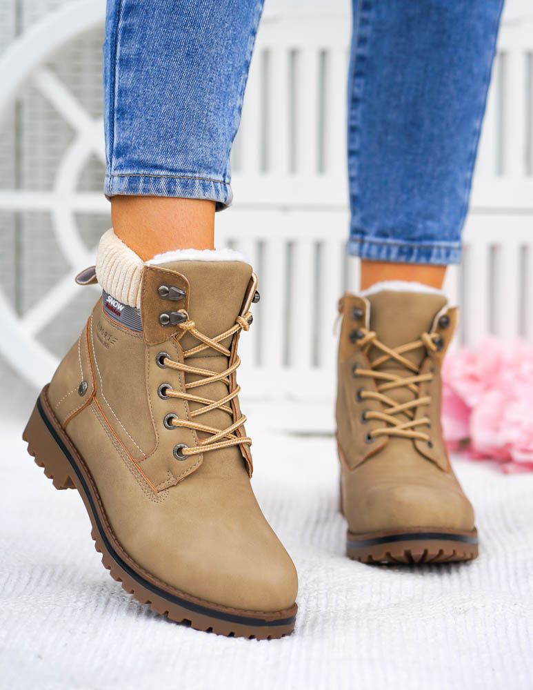 Botki Trapery Buty Sportowe Na Zimę Ocieplane Inez Beżowe