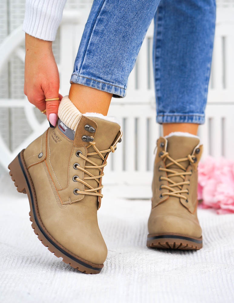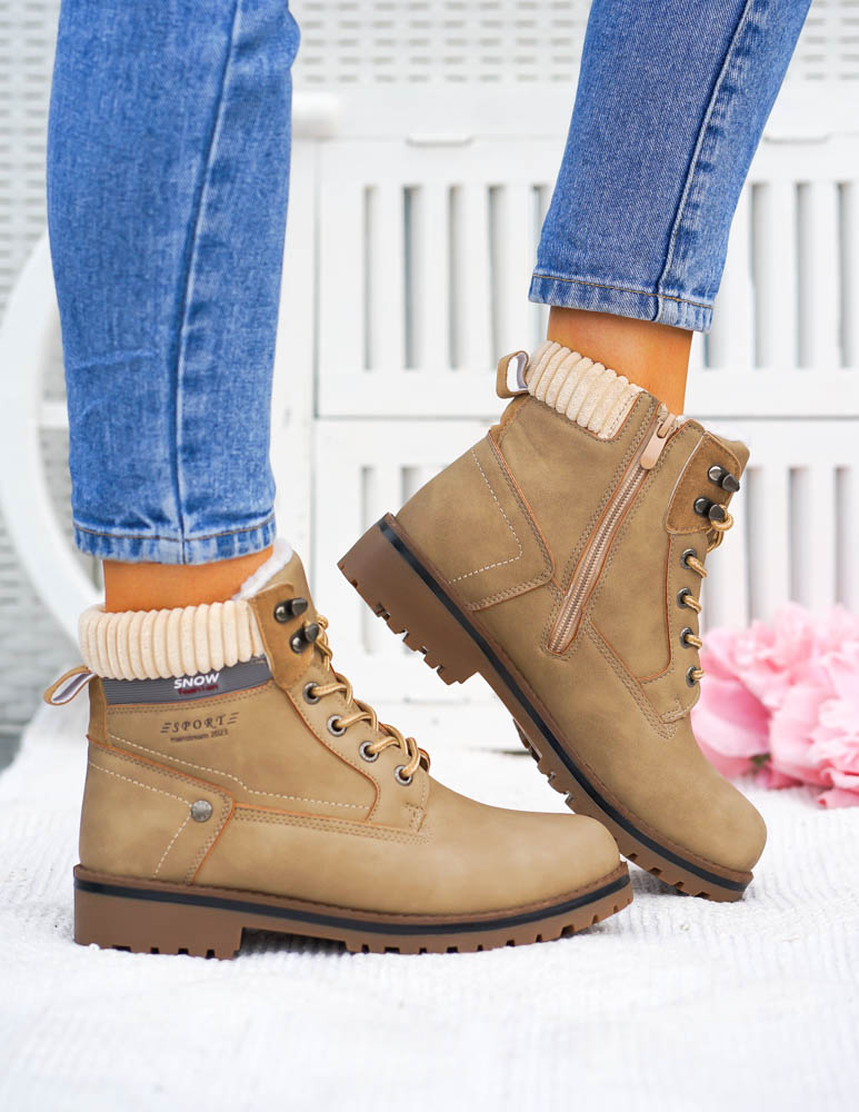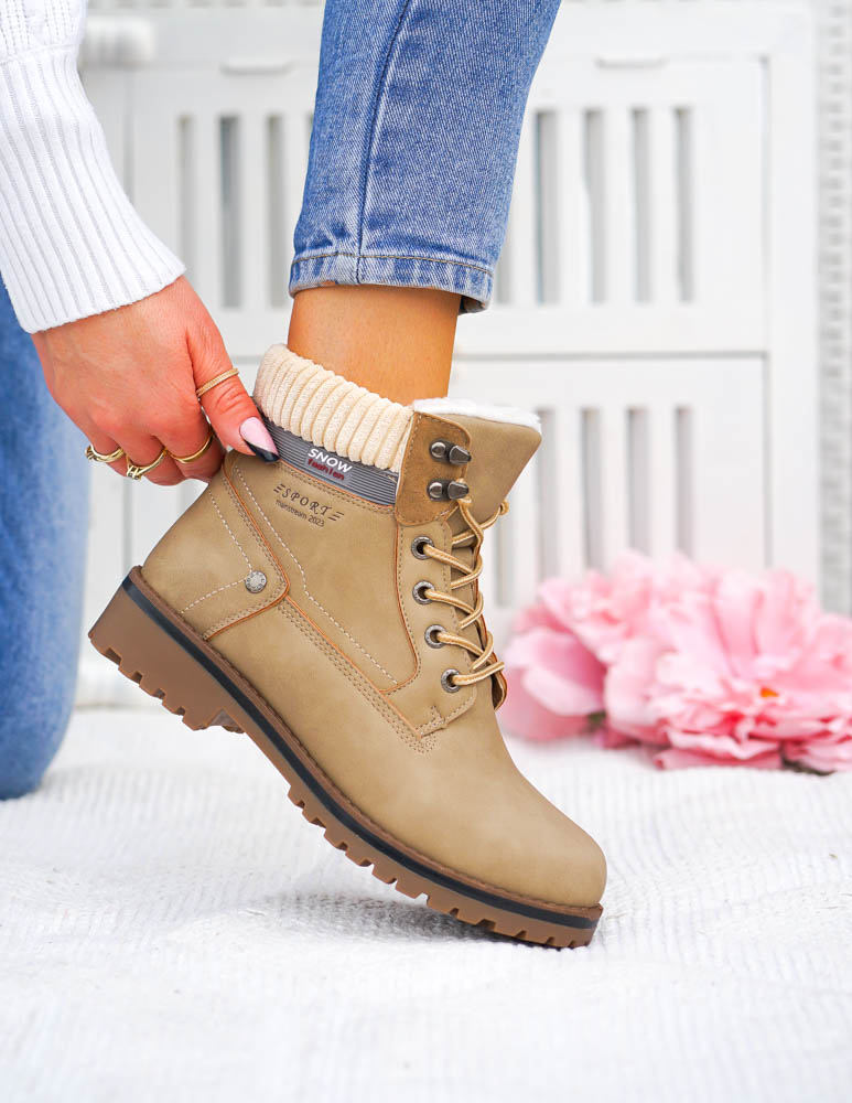Buty Zimowe Trapery Ocieplane Botki Śniegowce Mainstream Beżowe