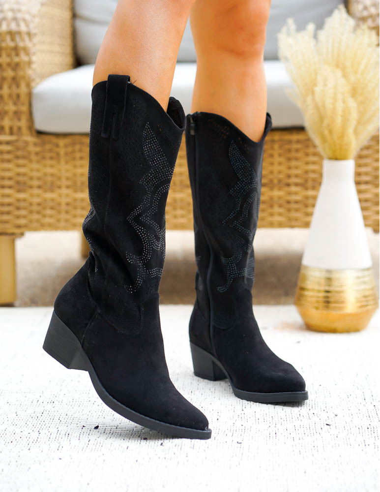 Czarne Ażurowe Zamszowe Botki Kozaki Na Obcasie Diamonds