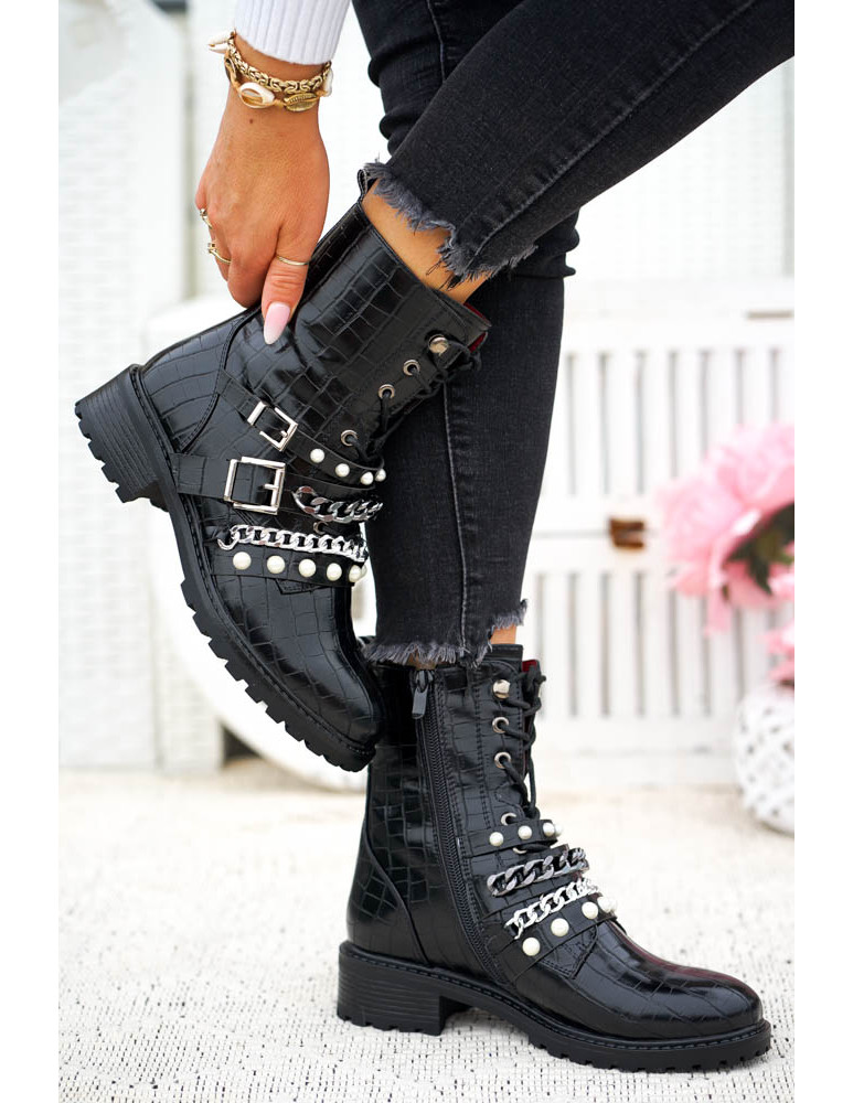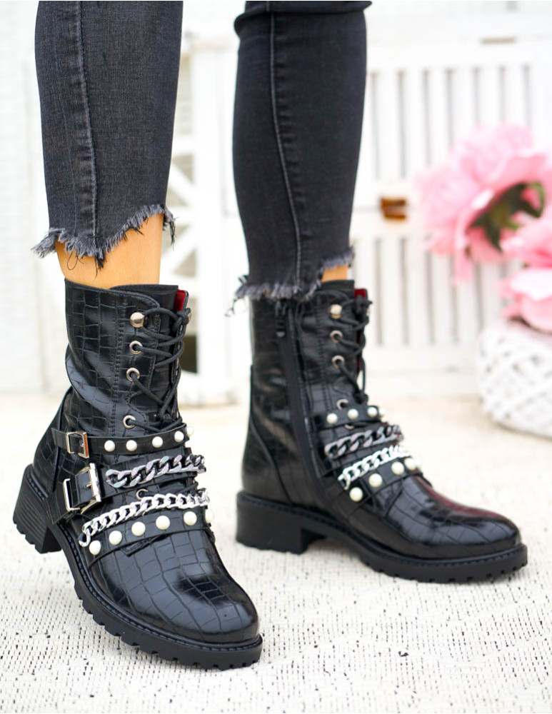 - Kod produktu: Czarne Botki Damskie Sznurowane Oficerki Hard