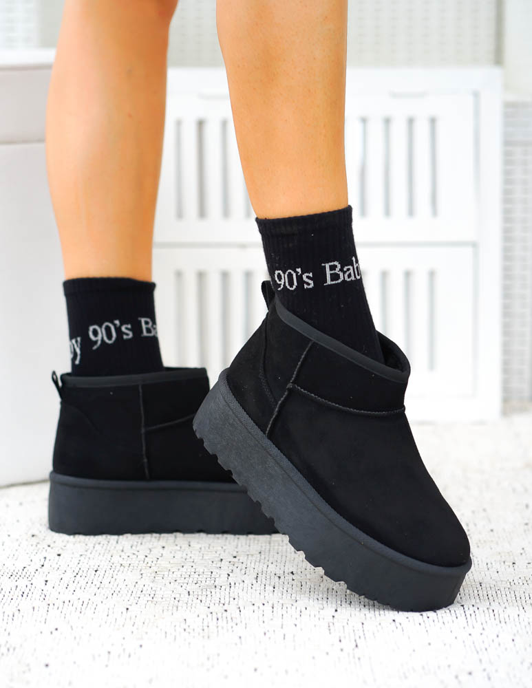 Krótkie Czarne Botki Z Gumami Na Platformie Mauris
