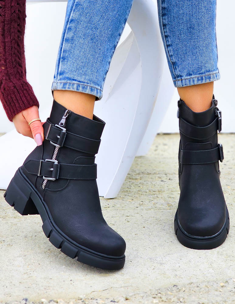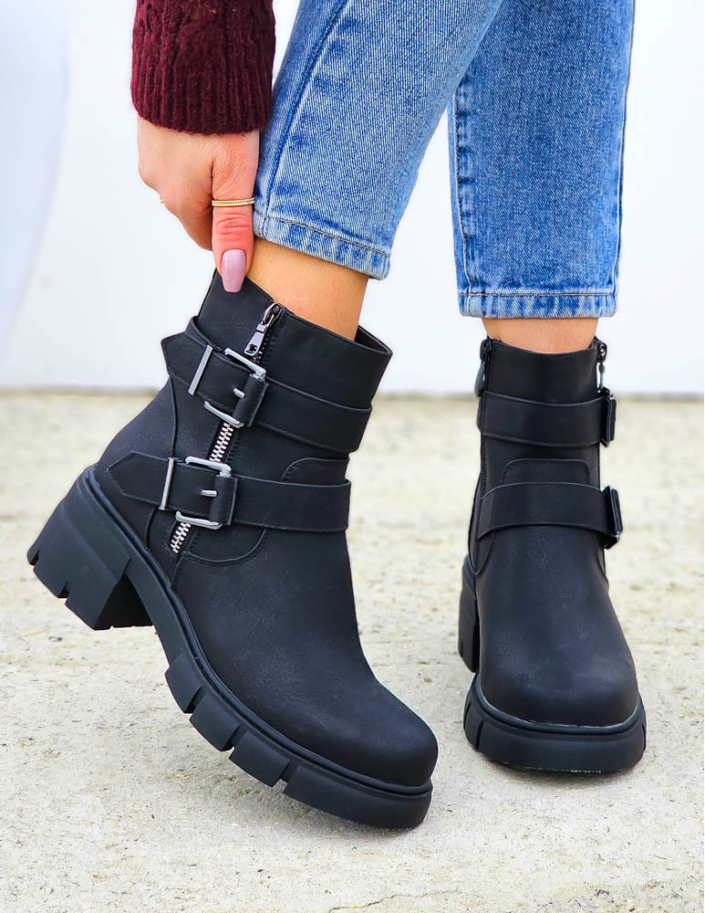 ❤NAJNOWSZA KOLEKCJA !!!❤EFEKTOWNE CZARNE BOTKI NA GRUBEJ PODESZWIE❤BUTY PPOSIADAJĄ GUMOWE WSTAWKI PO..