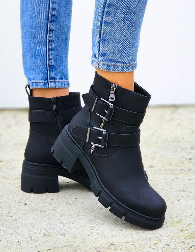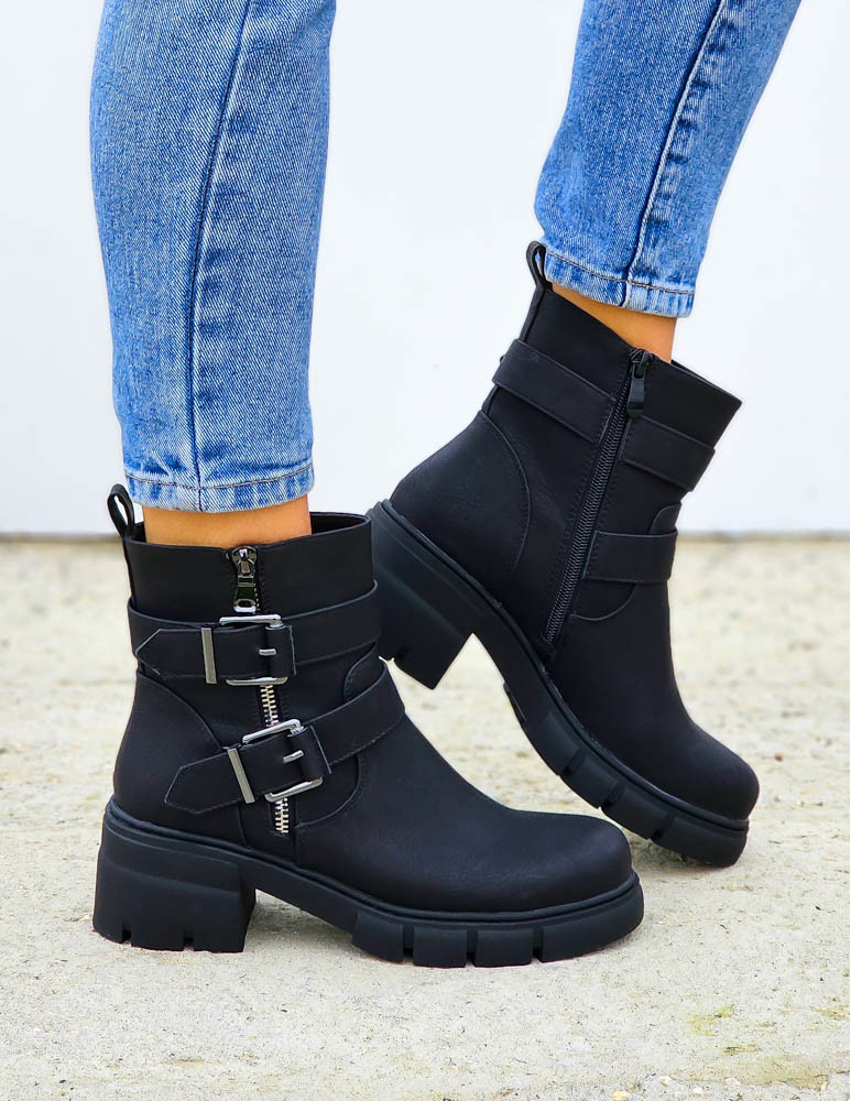 Krótkie Czarne Botki Z Gumami Na Platformie Mauris