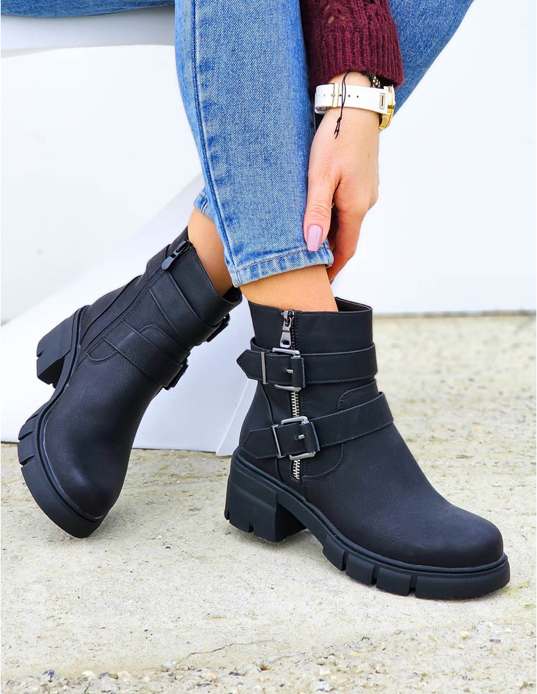 ❤ Modne i tanie buty on-line❤Klasyczne, czarne botki na niskim obcasie❤ Botki a`lla kowbojki ze..