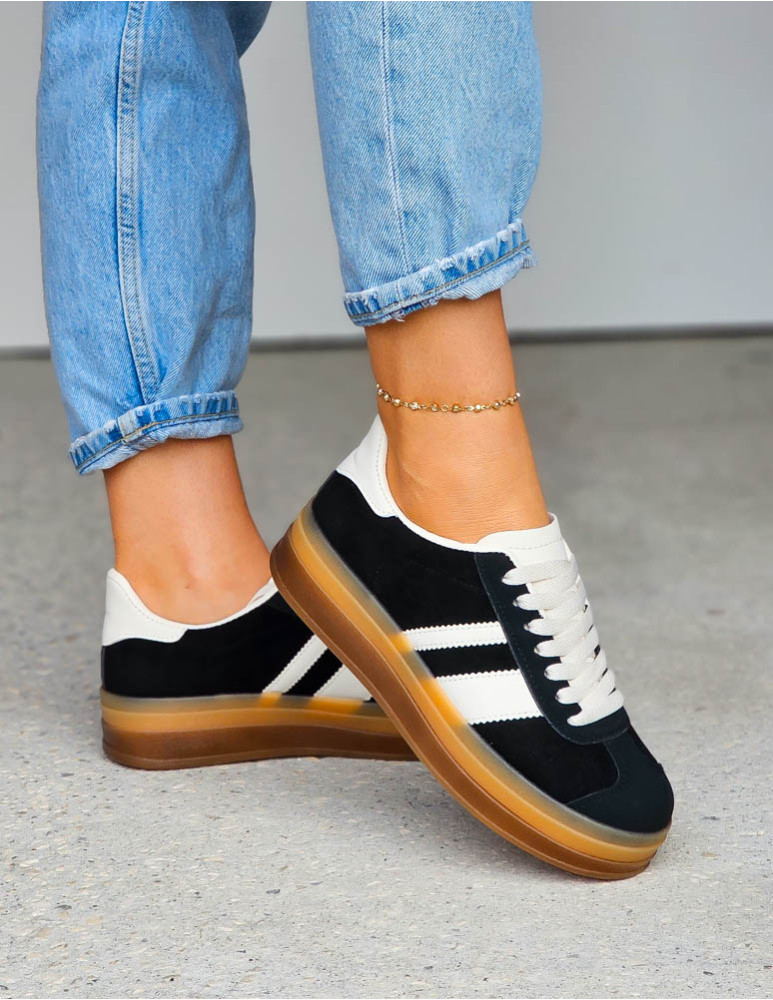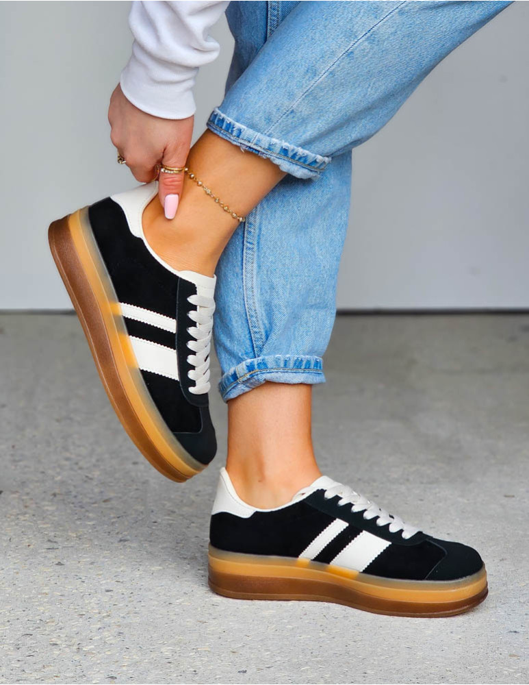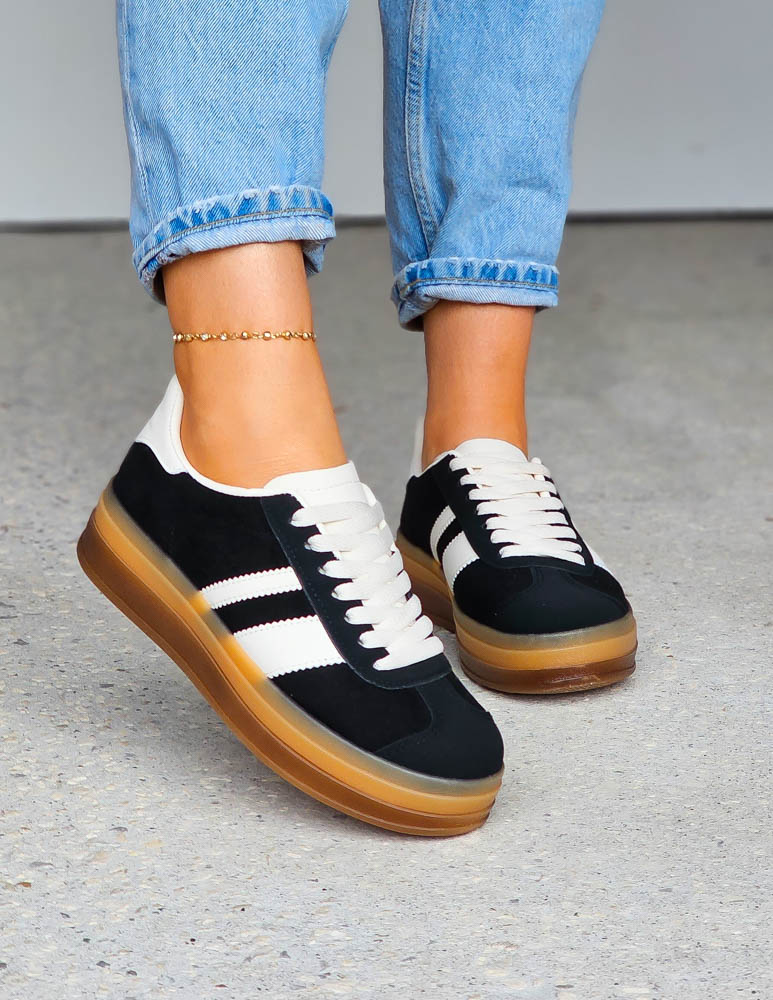 Ultra kobiece czarne adidasy z białymi wstawkami